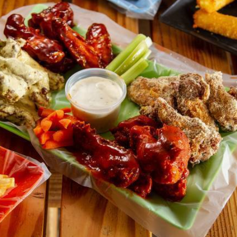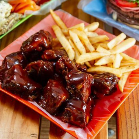 Hamburguesa de pollo y jalapeños, bañadas en salsa BBQ.
