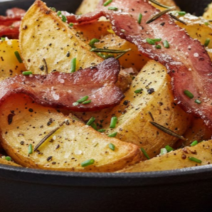 Crujientes papas fritas, bañadas en nuestra salsa especial con especias, tocino y quesos mixtos.