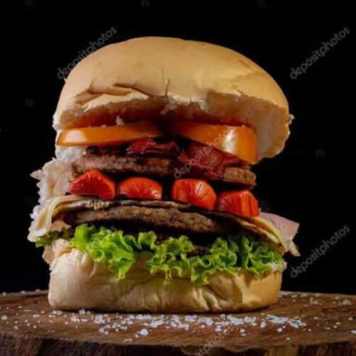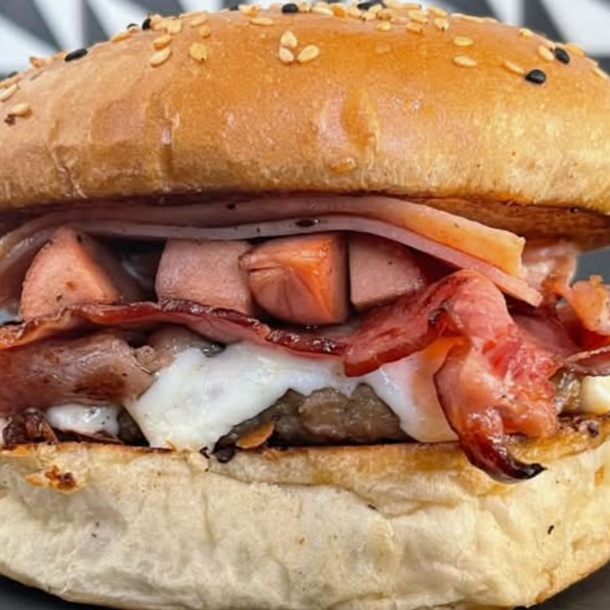 Doble carne, 4 salchichas,jamon,queso amarillo.imagen de referencia