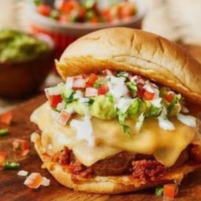 1 carne de hamburguesa especial, capa de chorizo todo esto gratinado con queso oaxaca