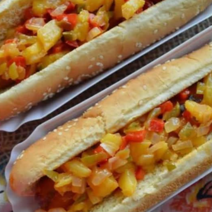 Pan wonder grand, salchicha grande y piña.imagen de referencia.
