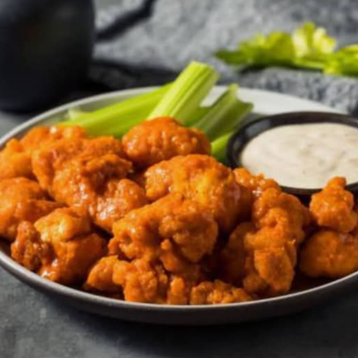 Disfruta de Nuestros deliciosos Boneless 250 gr. Aproximadamente ,bañados en salsa búfalo. IMAGEN DE REFERENCIA