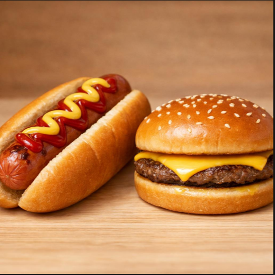 Consiste en 1 hamburguesa y 1 hot dog clasico.imagen de referencia