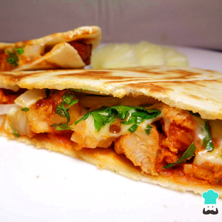 La carne de tu preferencia con quesito derretido, cebolla y cilantro entre dos tortillas de harina.