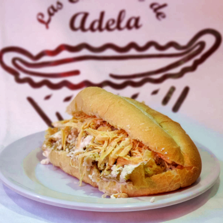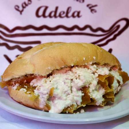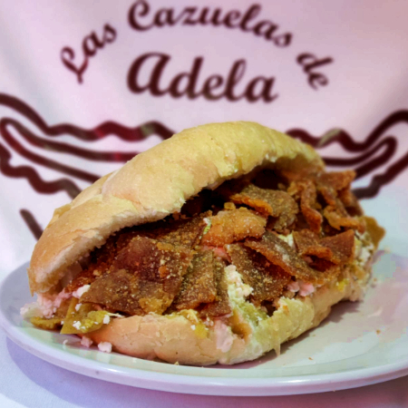 Torta de chilaquiles con Pollo, Queso, Cebolla y Crema.
