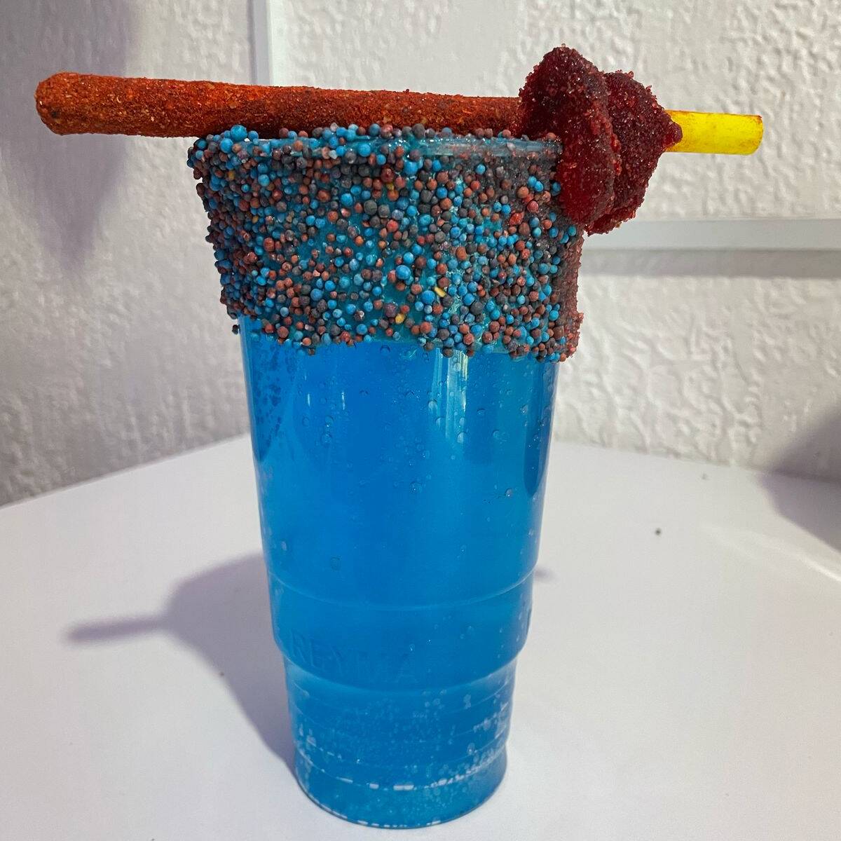 Combinación perfecta de hielos, curazao, vodka, volt, sprite y gomitas.