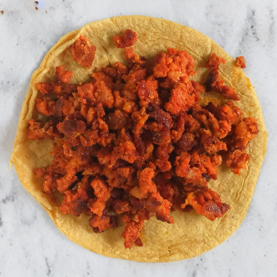 Queso Oaxaca fundido con 90 g de chorizo. Una combinación clásica y deliciosa.