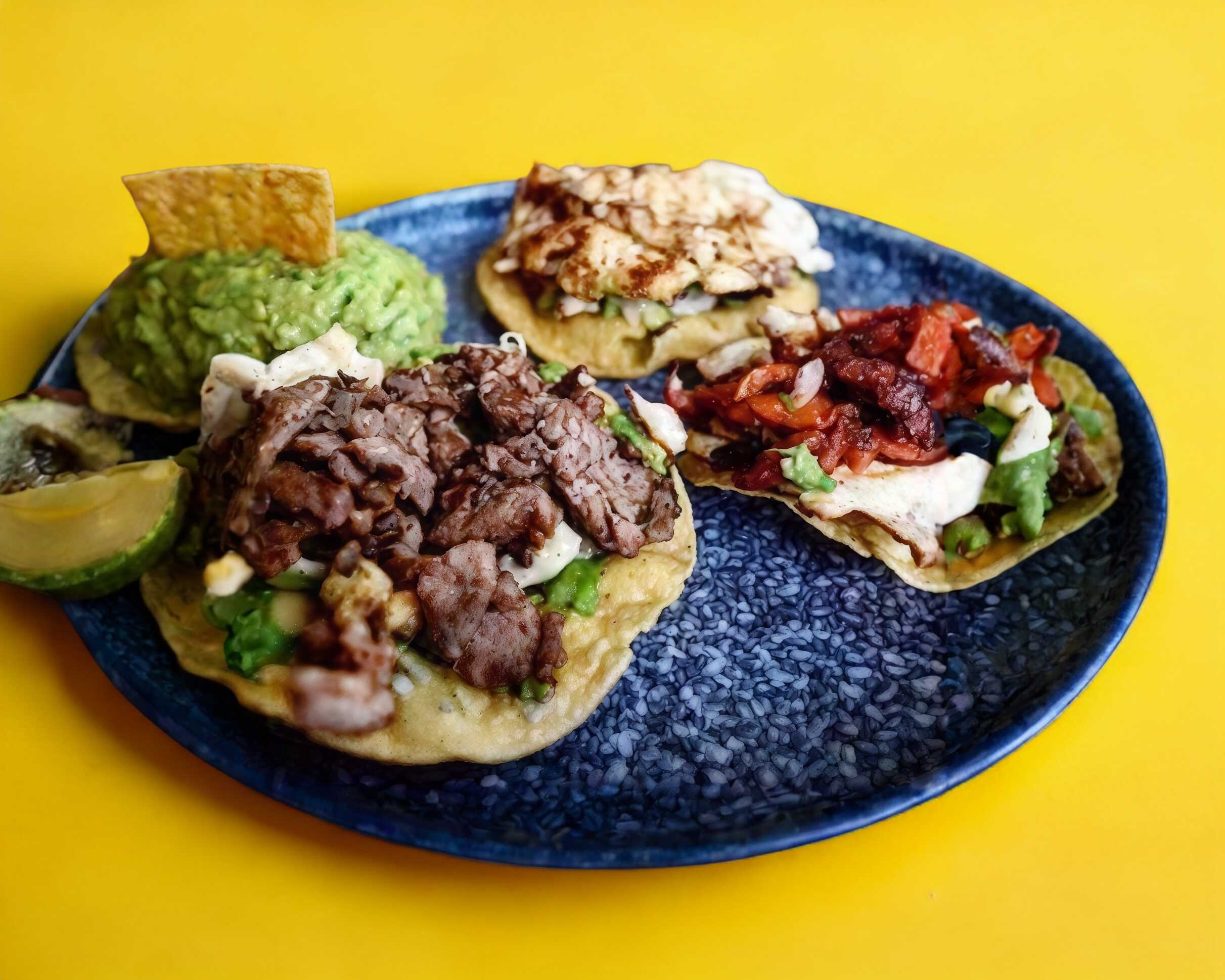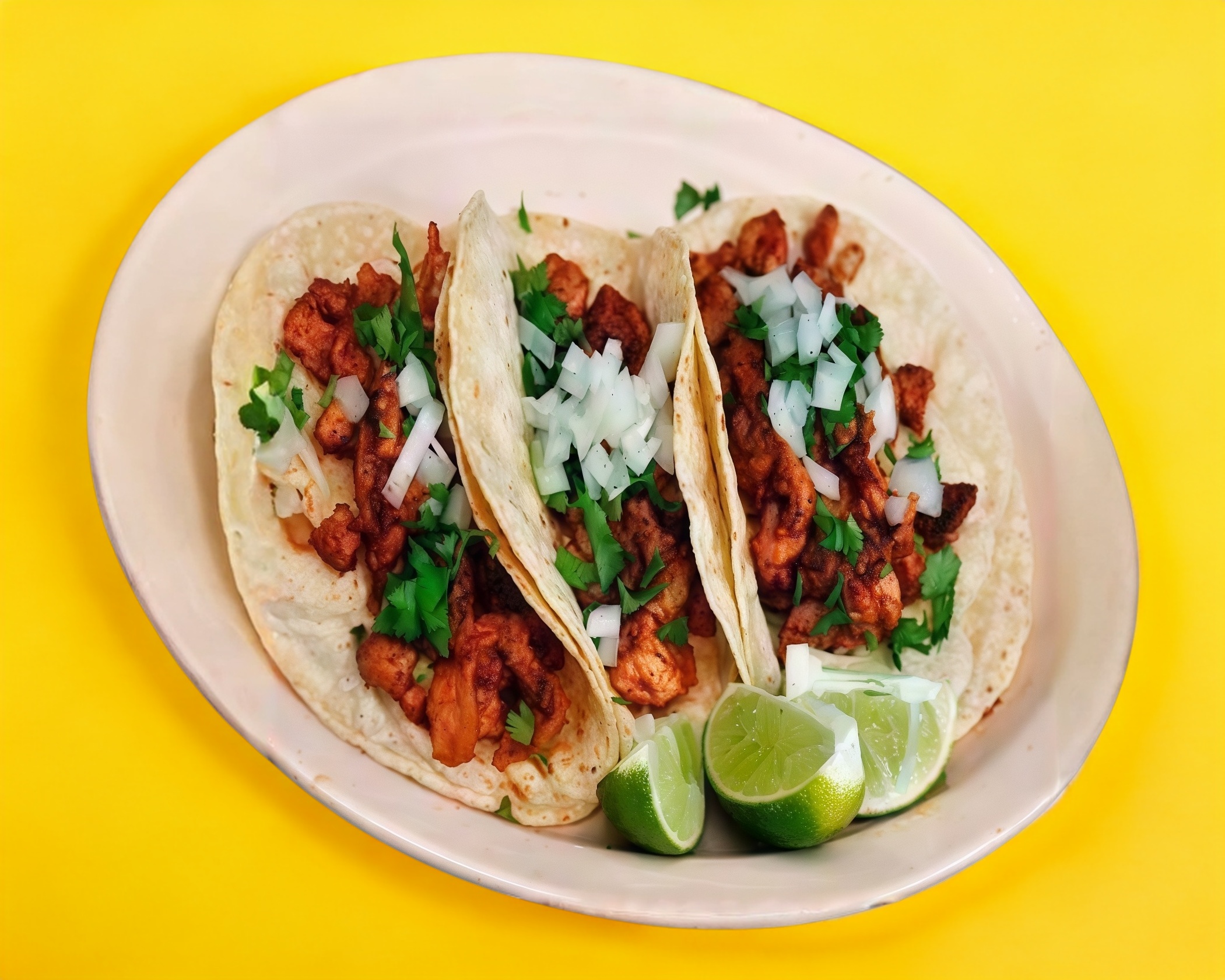 3 PZ. De tostaditas de pastor con queso, cilantro, cebolla y piña