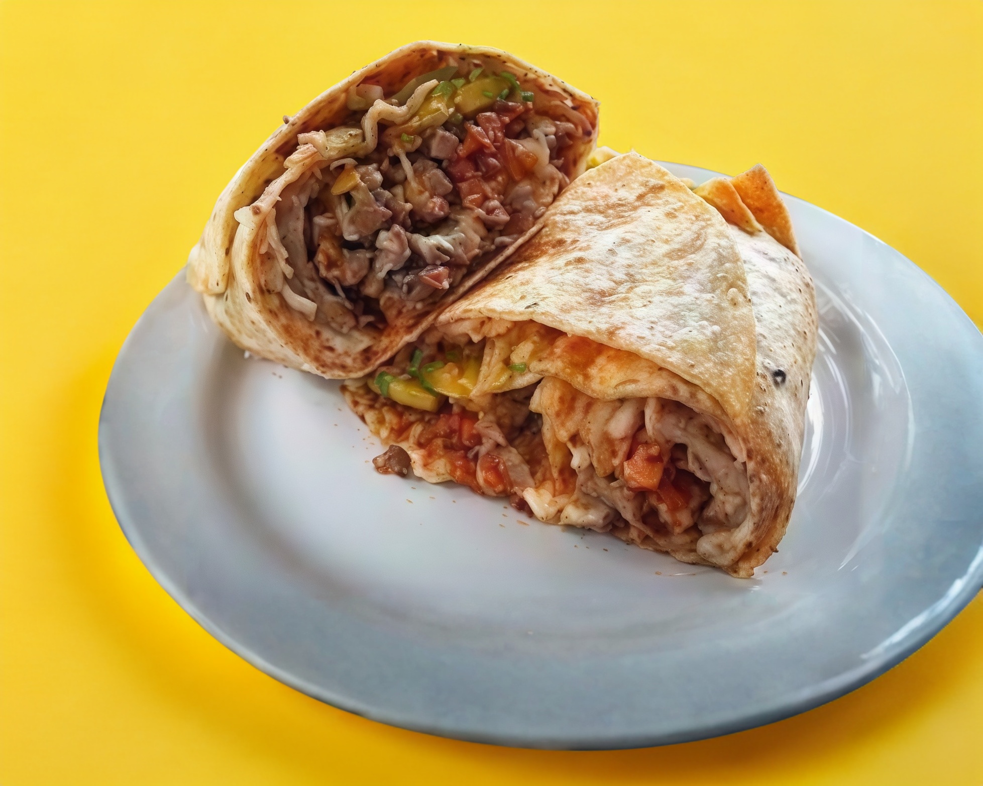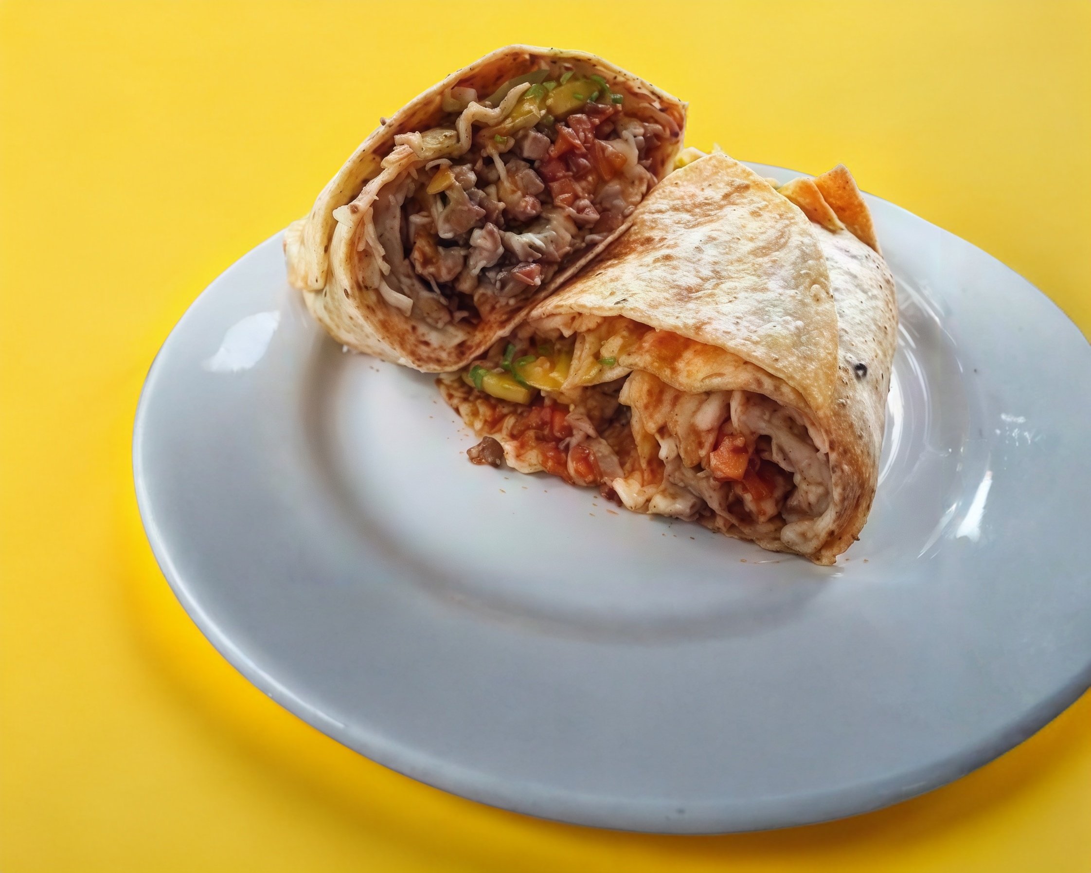 Burrito de bistec + Costra de pastor + 2 Aguas de horchata 500 ml. + 2 Aguas de Jamaica 500 ml + Alambre de bistec + Gringa de Pastor