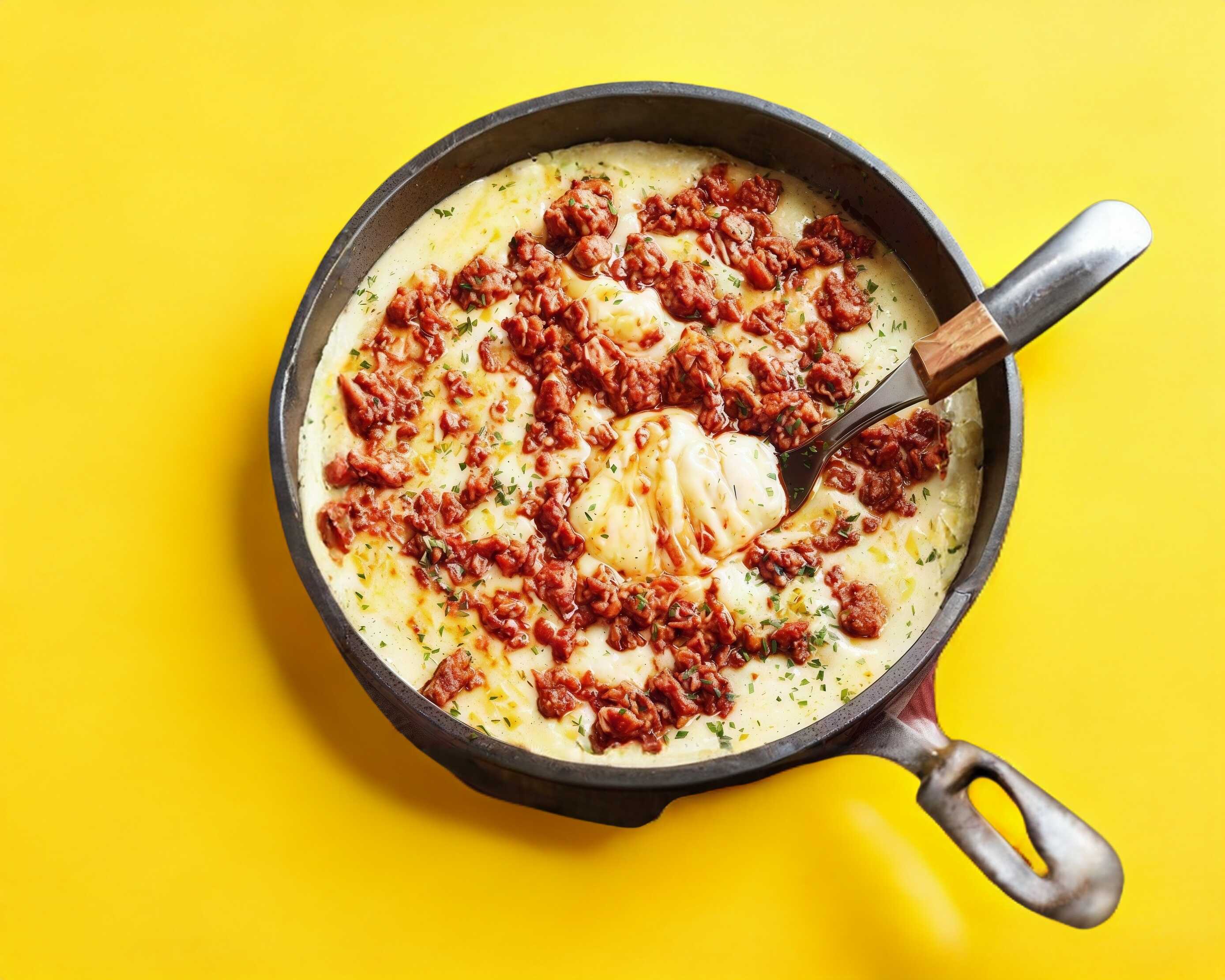 Suadero y longaniza con queso Oaxaca verdura cilantro y cebolla