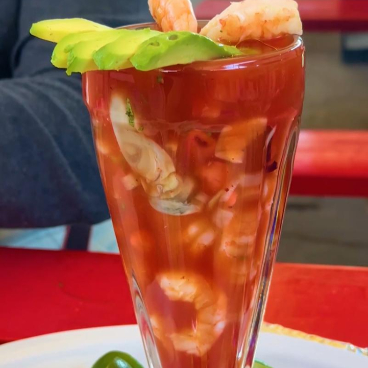Cóctel con la salsa coctelera de la casa. Elige entre camarón, ostión y pulpo, tamaño a elegir.