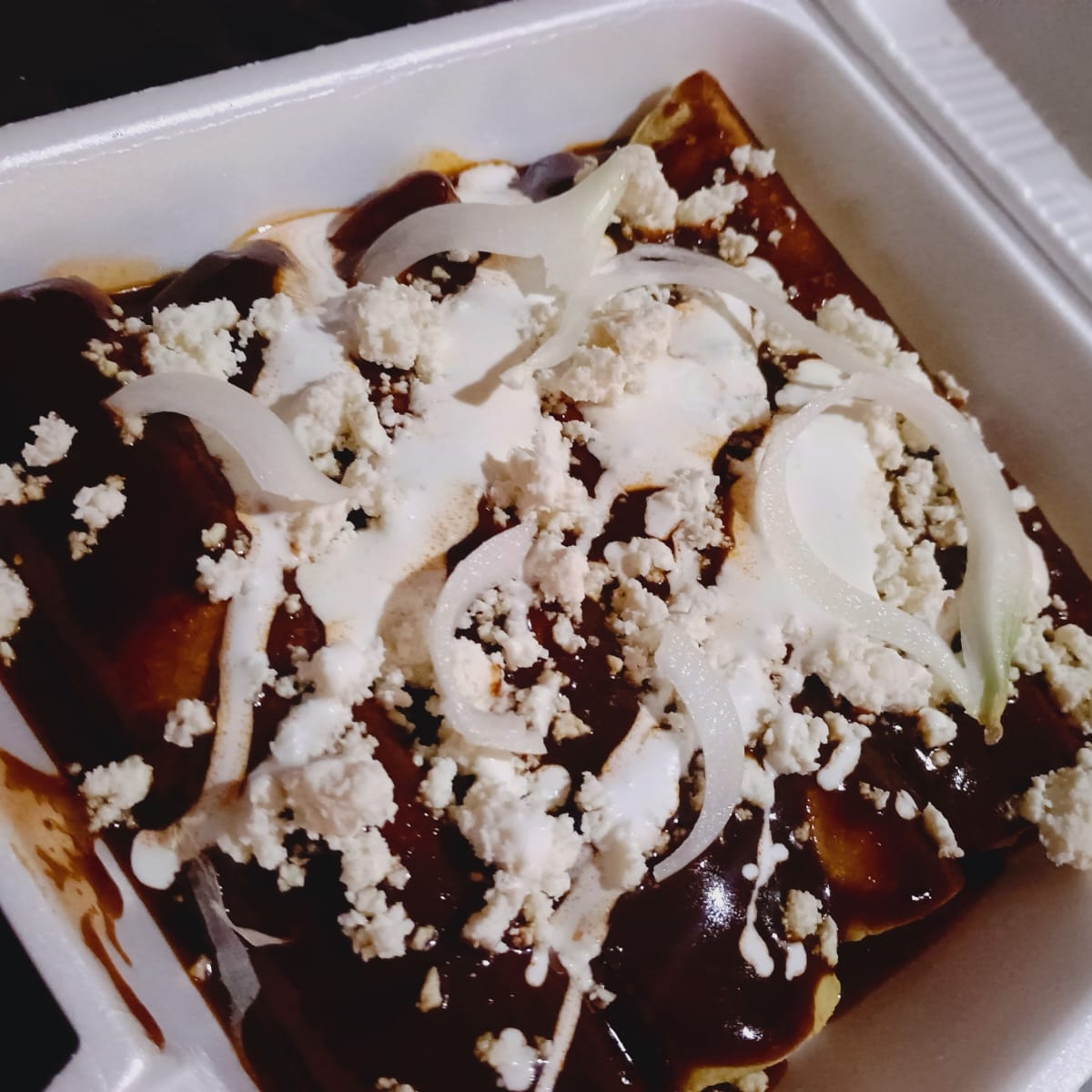 Agua de Tamarindo*1 + Platillo de Enmoladas con Pollo*1