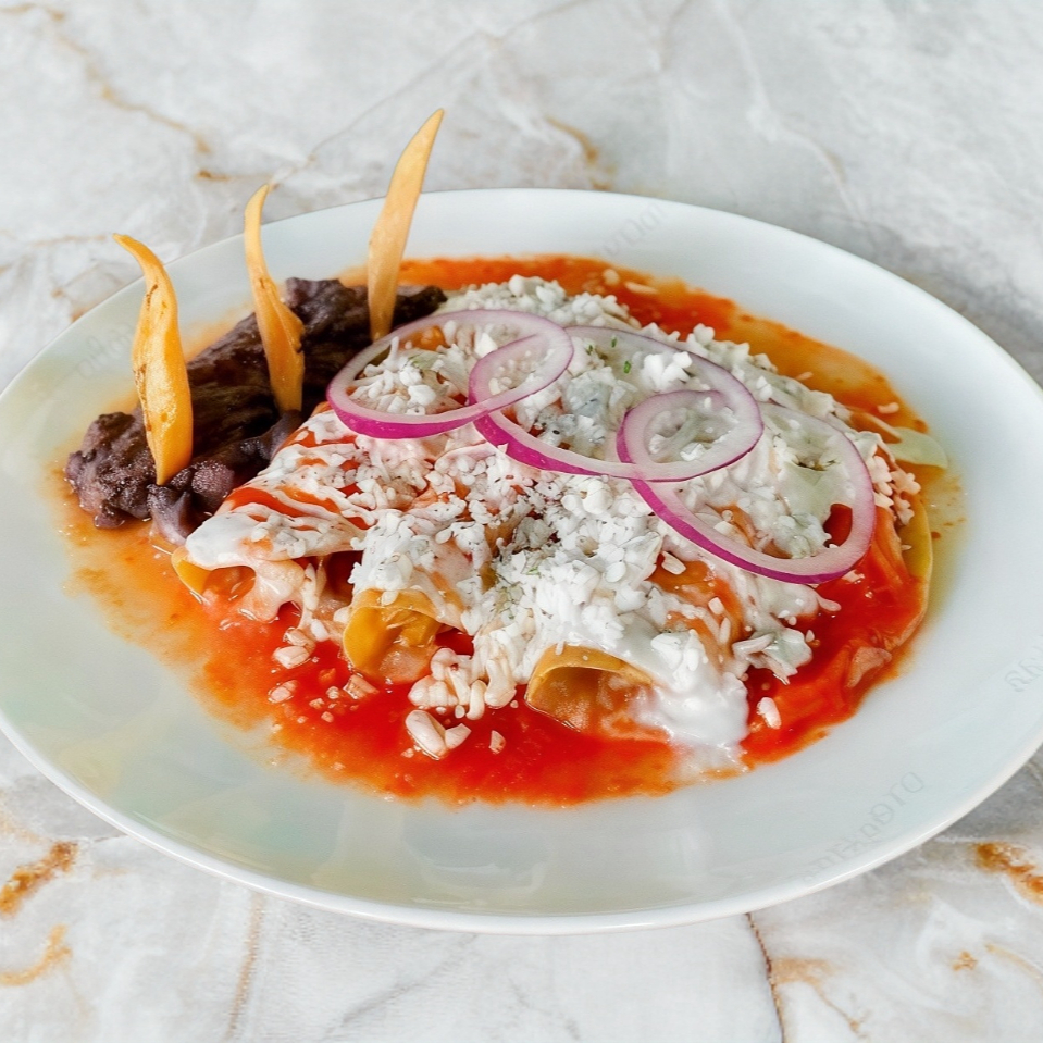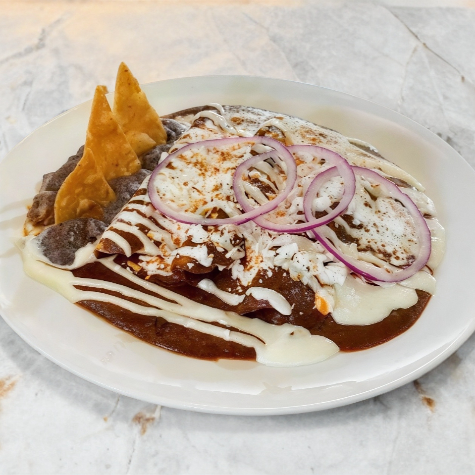 Enfrijoladas deliciosas, como las que hace la abuelita, pídelas con queso o con pollo.