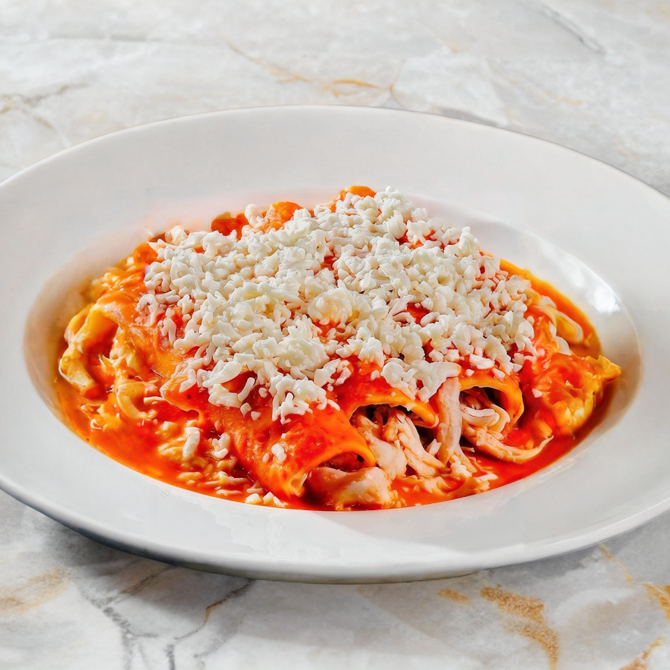 Enchiladas individuales: deliciosas enchiladas en salsa verde, con crema y queso manchego gratinado; elige tu proteína.
