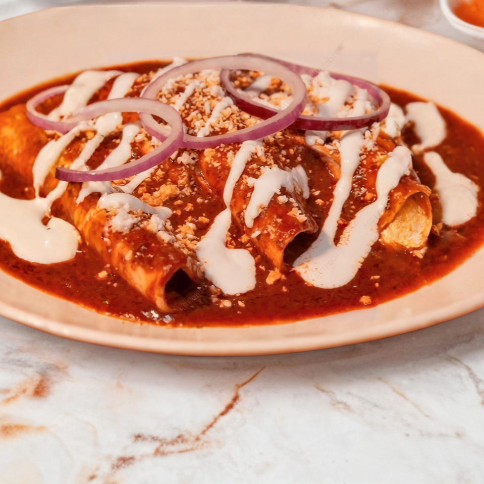 Enchiladas rojas como las que hace mamá, exquisitas con pollo o quesito o huevito, tú elijes.