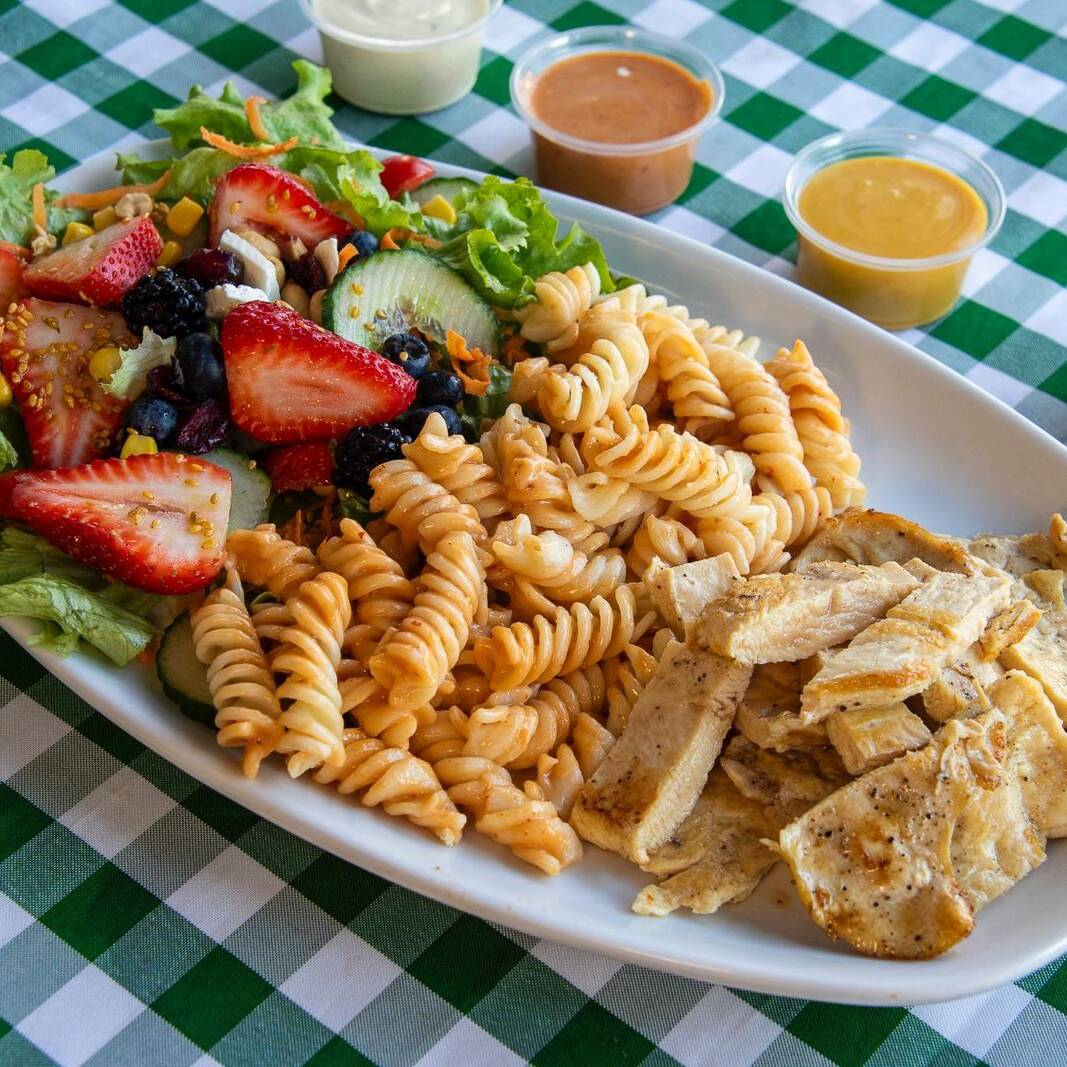 Pechuga Asada*1 + Porción de Pasta Fussili al Chipotle*1 + Porción de Ensalada Fresca*1
