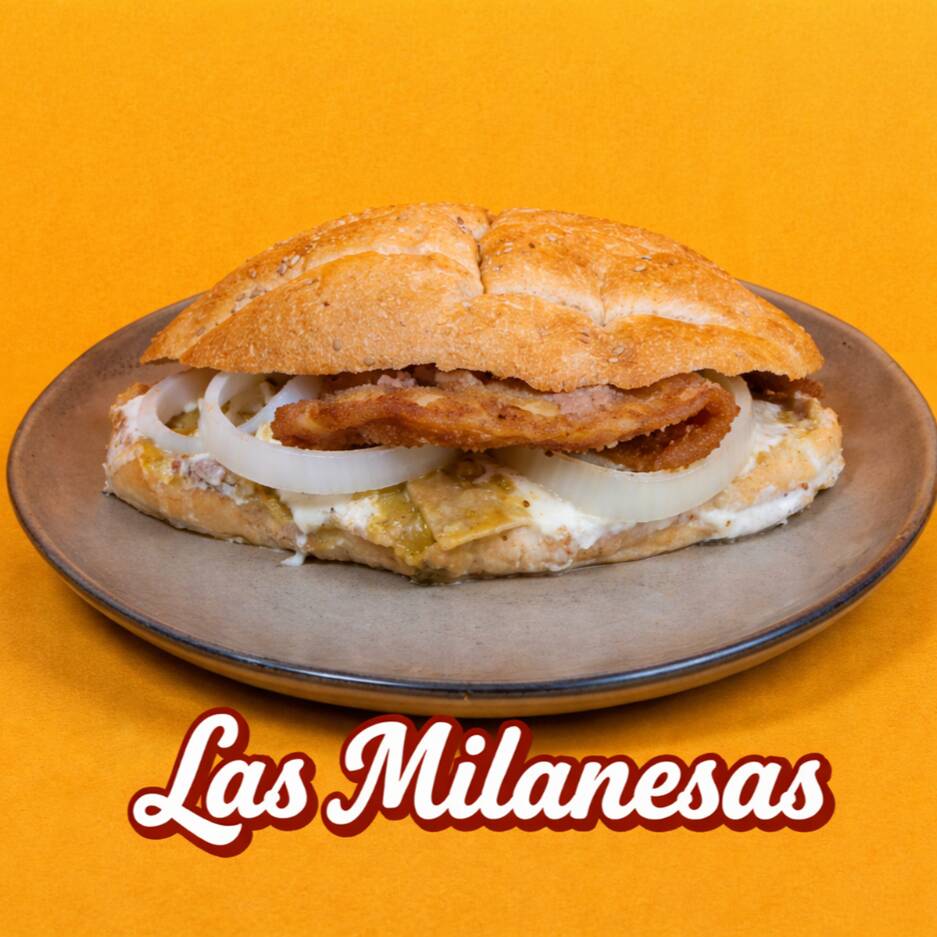 Milanesa, Chorizo, Quesillo, Frijoles, Mayonesa, Aguacate, Jitomate, Cebolla, Rajas con Chipotle y Lechuga