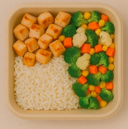 200 g De pechuga de pollo, arroz y mix de verduras.