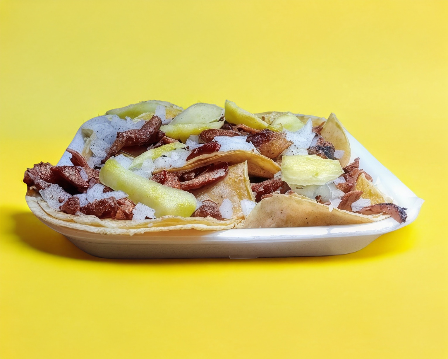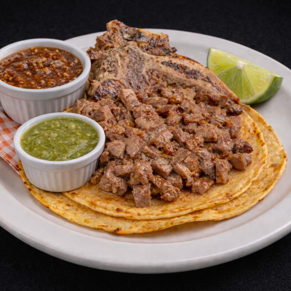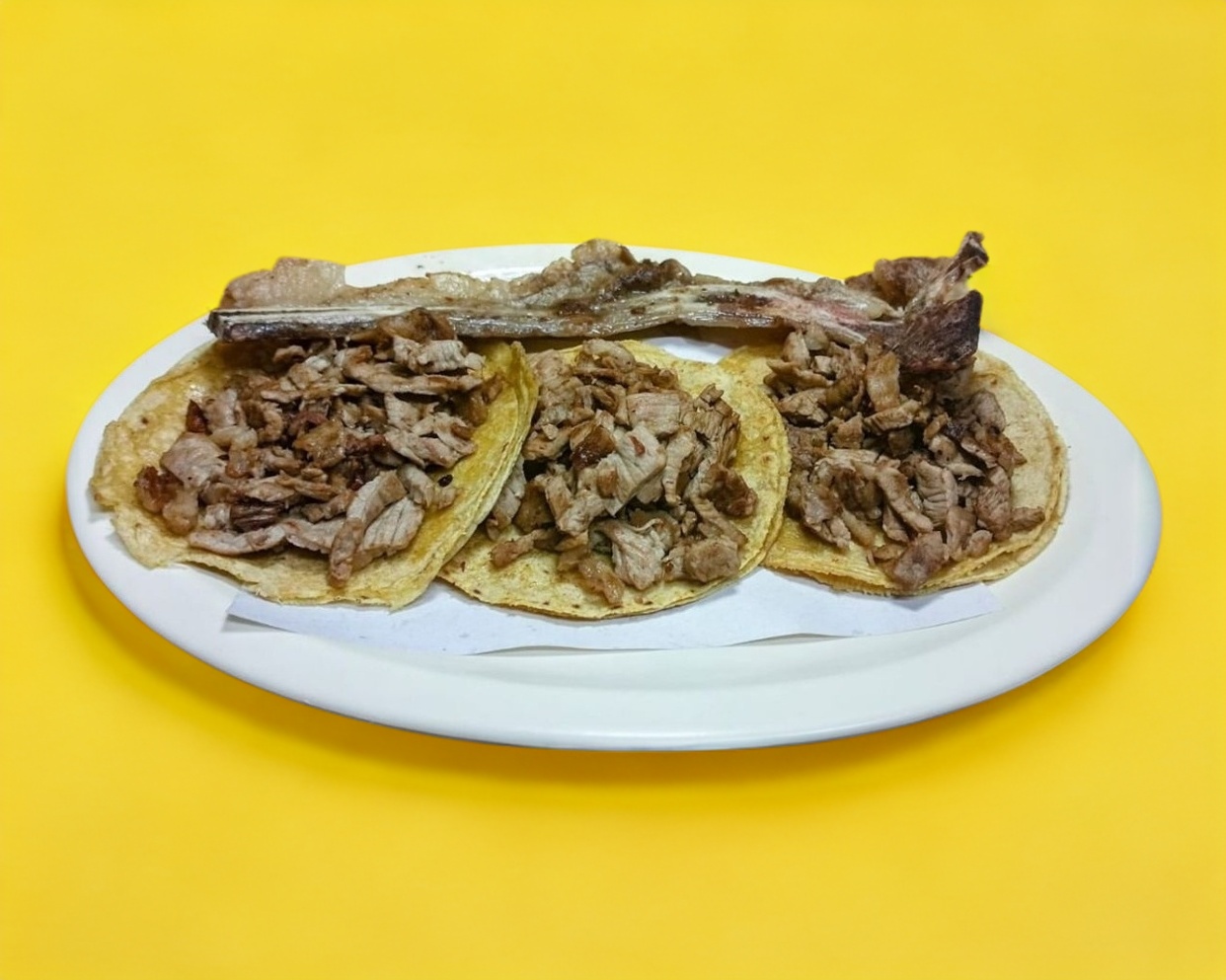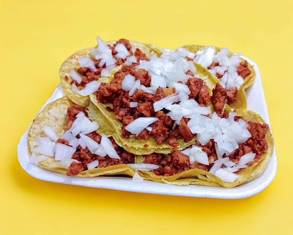 3 Piezas. Tostadas de maíz, bistec y queso manchego derretido.