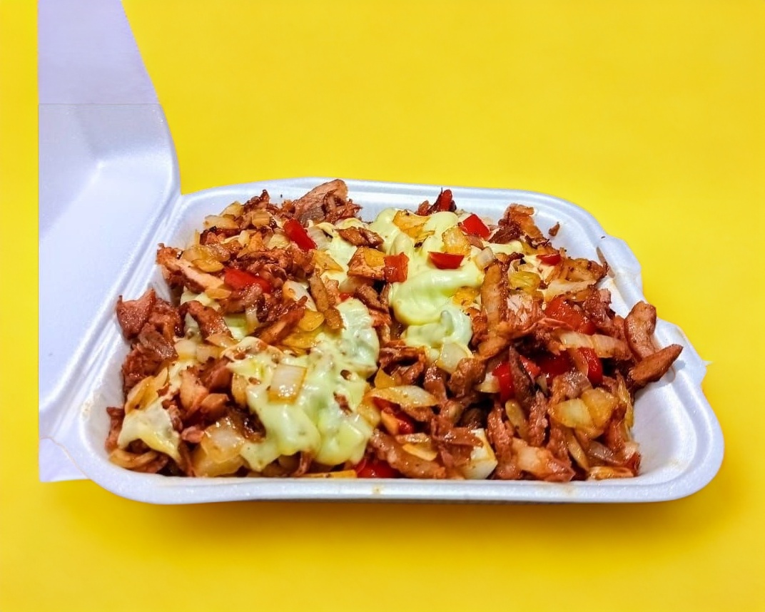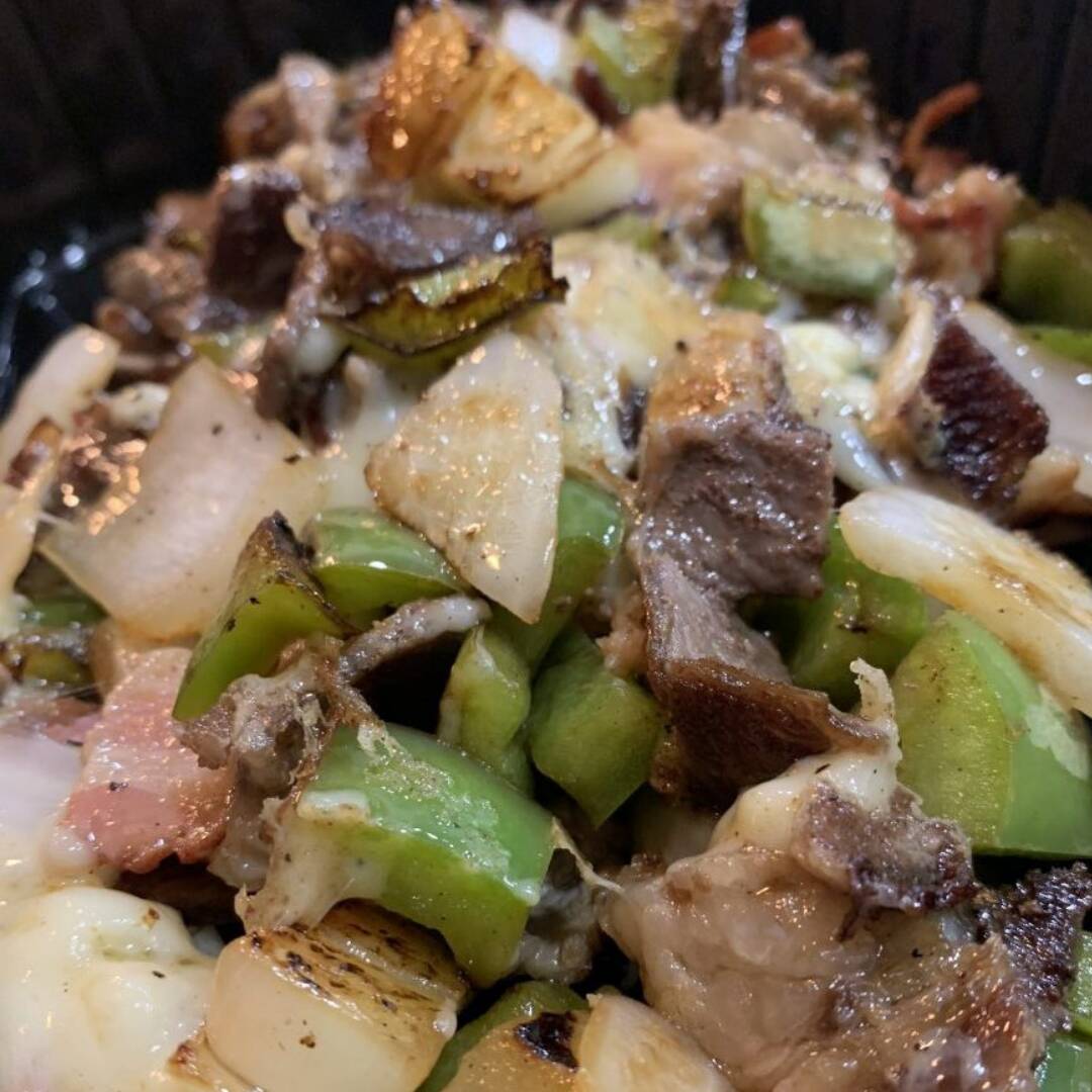 Preparado con morrón cebolla bistec de res queso manchego acompañado de 20 piezas de tortillas de maíz taquera