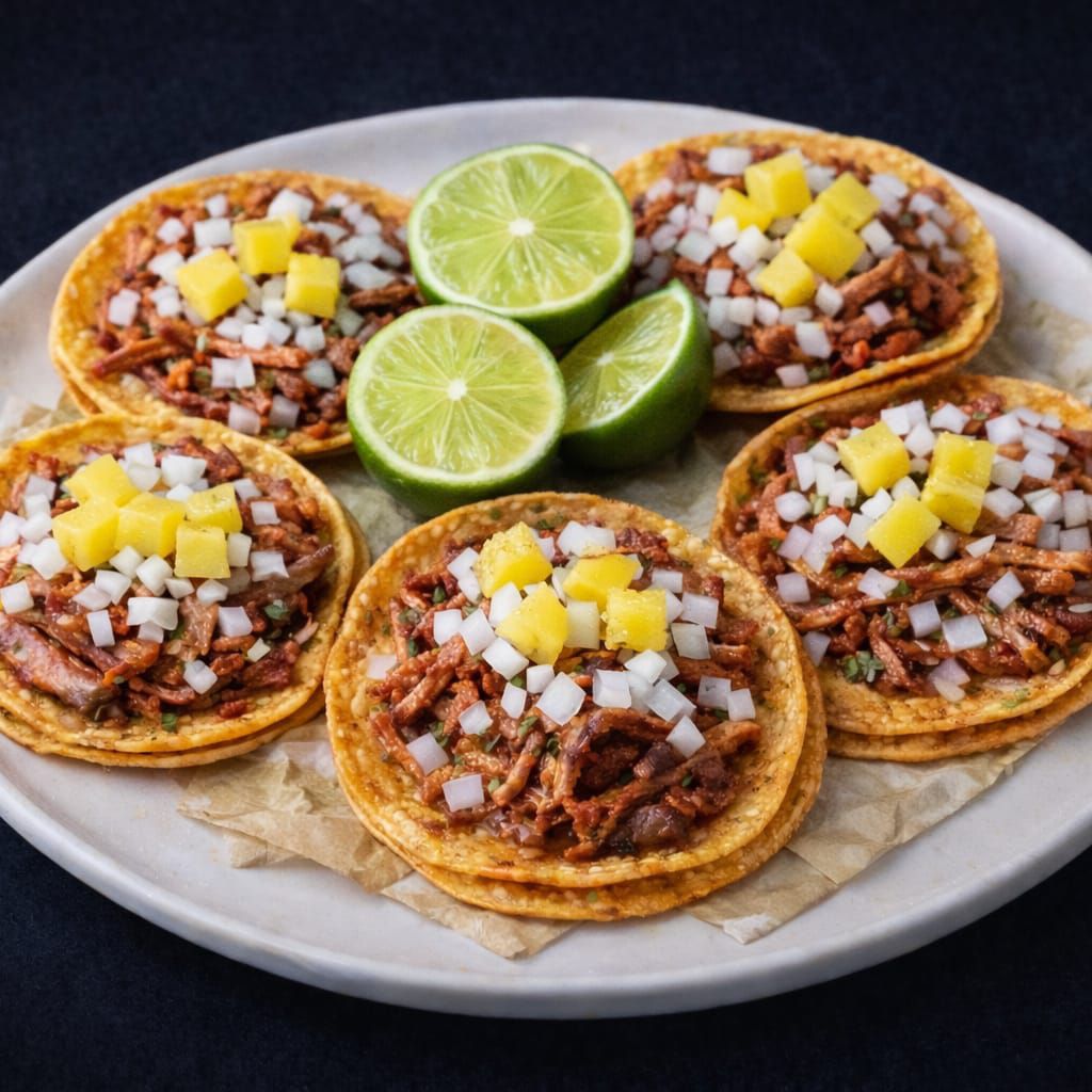 Carne al pastor, chile morrón, cebolla y queso manchego. Incluye tortillitas.
