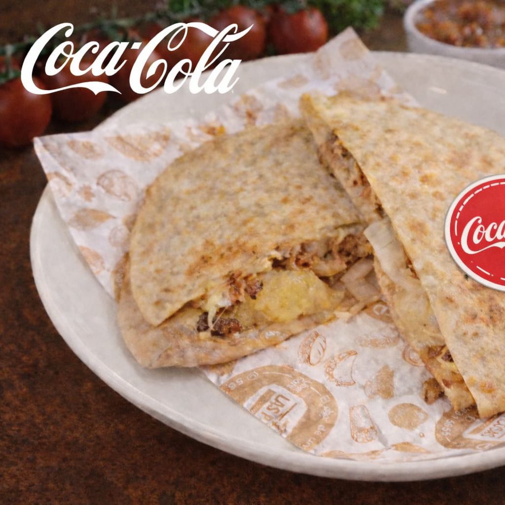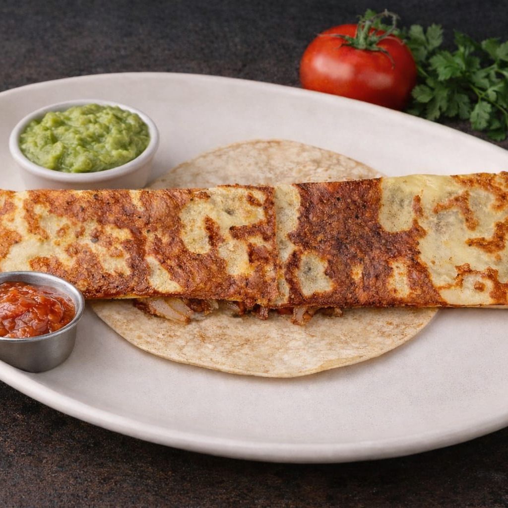 Doble tortilla de harina, longaniza y queso manchego derretido.