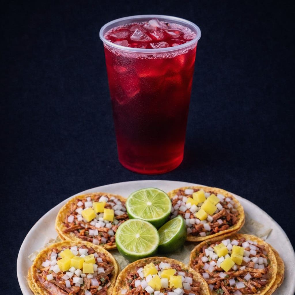 Orden de 5 Tacos Al Pastor y Agua de Jamaica 500 ml