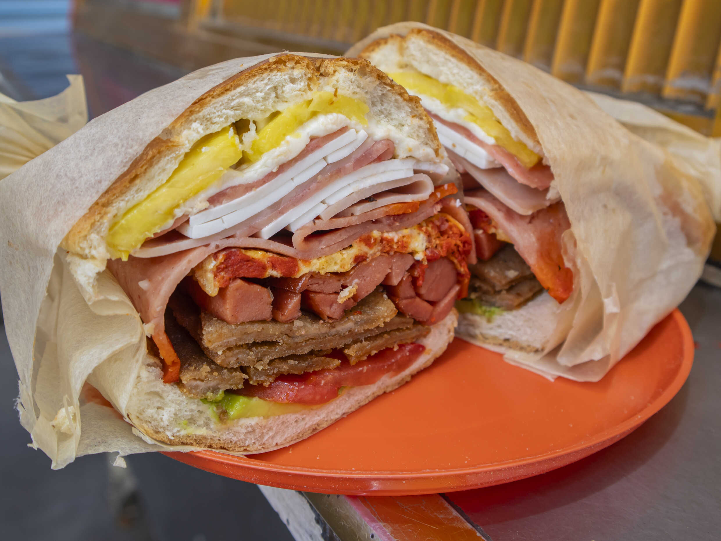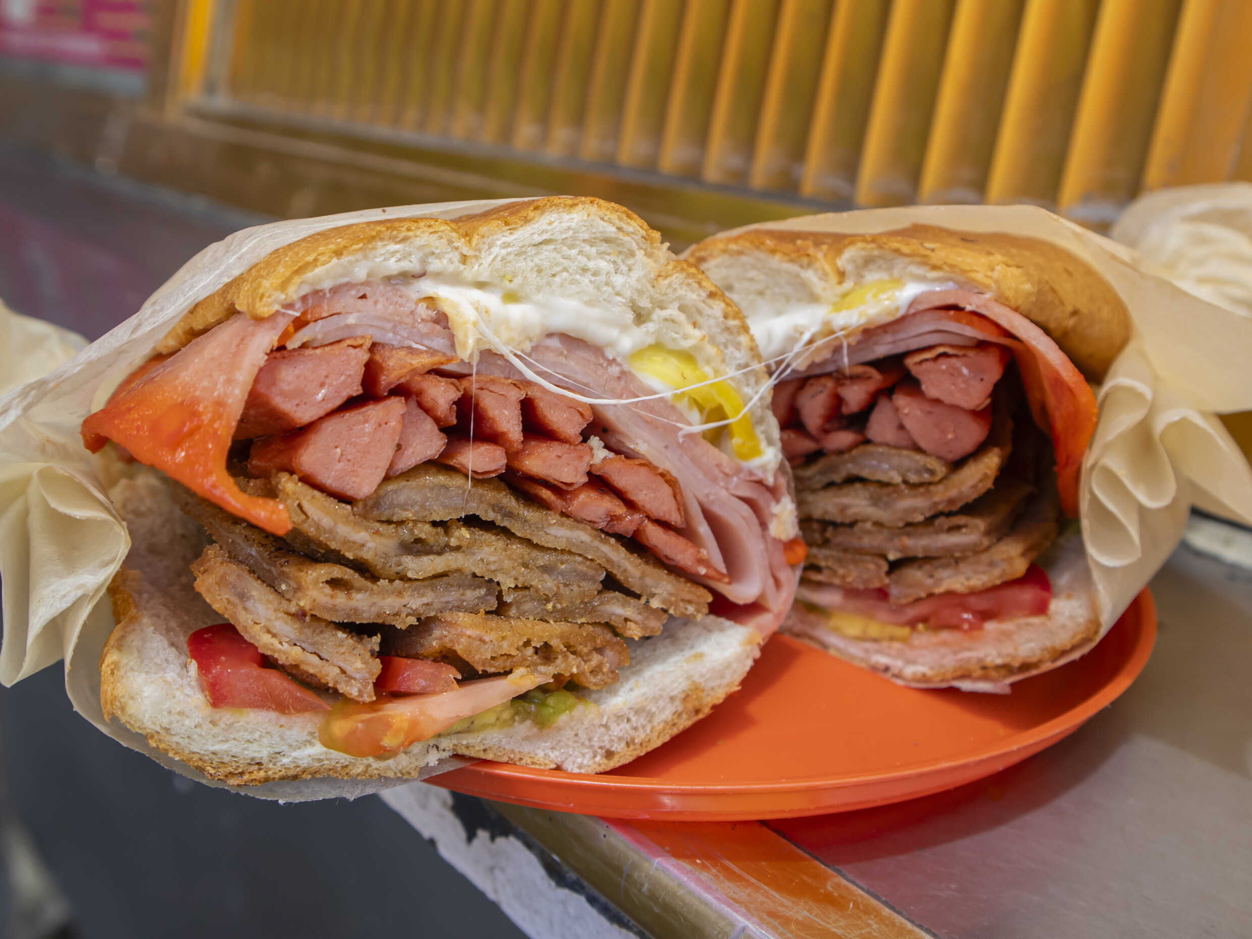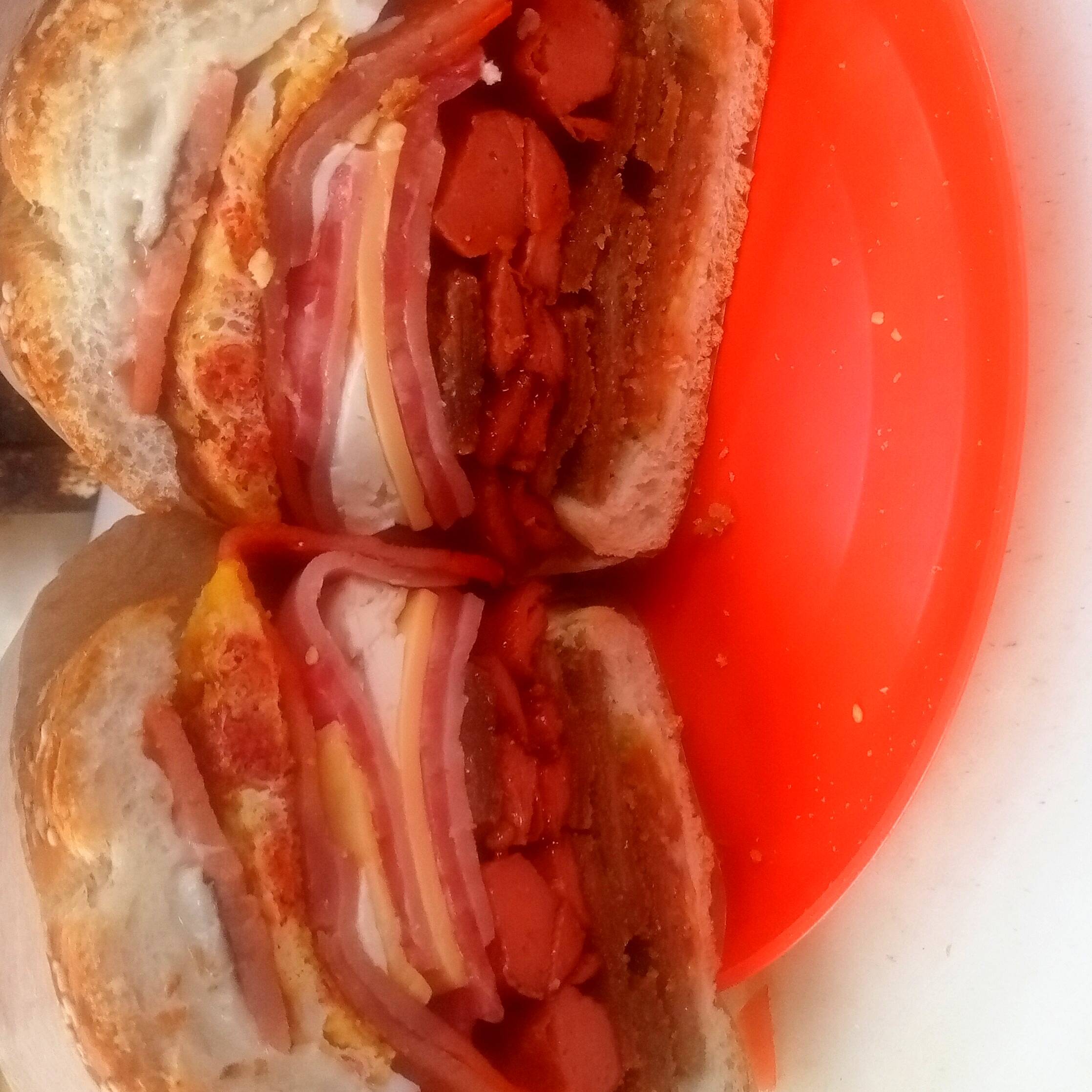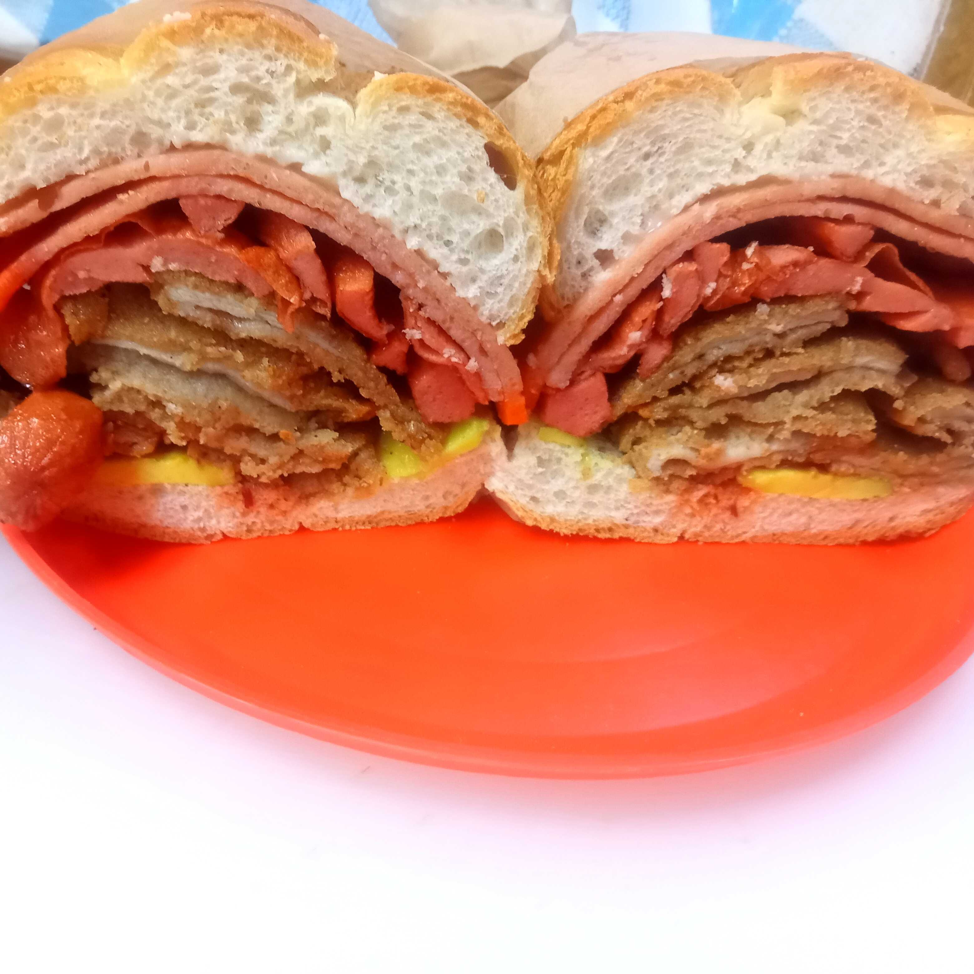 Disfruta de nuestra torta con 250 gramos de milanesa, 250 gramos de pierna, 250 gramos de salchicha, jamón, dos rebanadas de queso blanco, dos rebanadas de queso de puerco, un chorizo, un huevo, una chuleta, piña fresca y quesillo.
