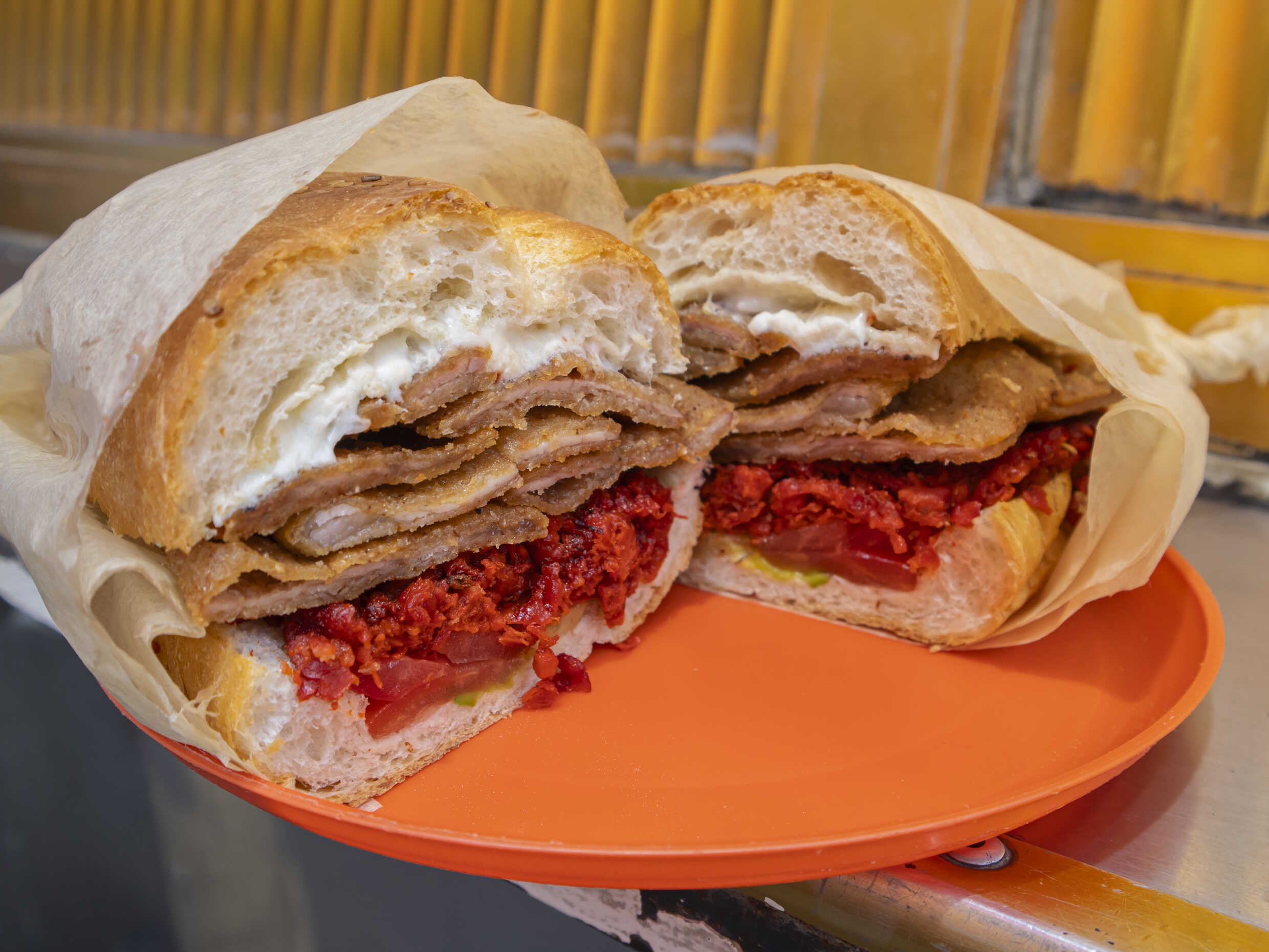 Torta Palencia que incluye: Milanesa, Salchicha, Quesillo, Jitomate, Aguacate, Picante y Mayonesa. (Tamaño Regular)