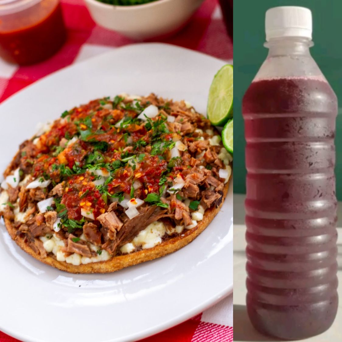Deliciosa pellizcada de birria con consomé, verdura, salsa, más un agua de 500 ml.