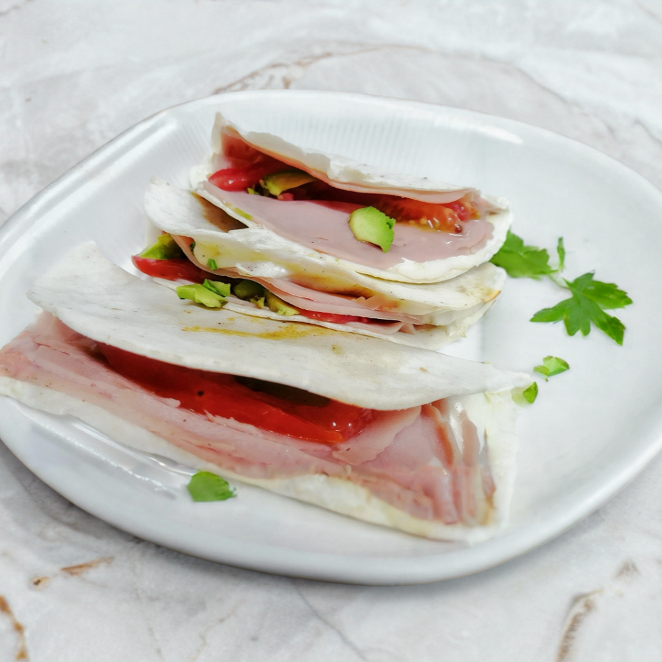 3 Sincronizadas de tortilla de harina, queso amarillo, quesillo y jamón.