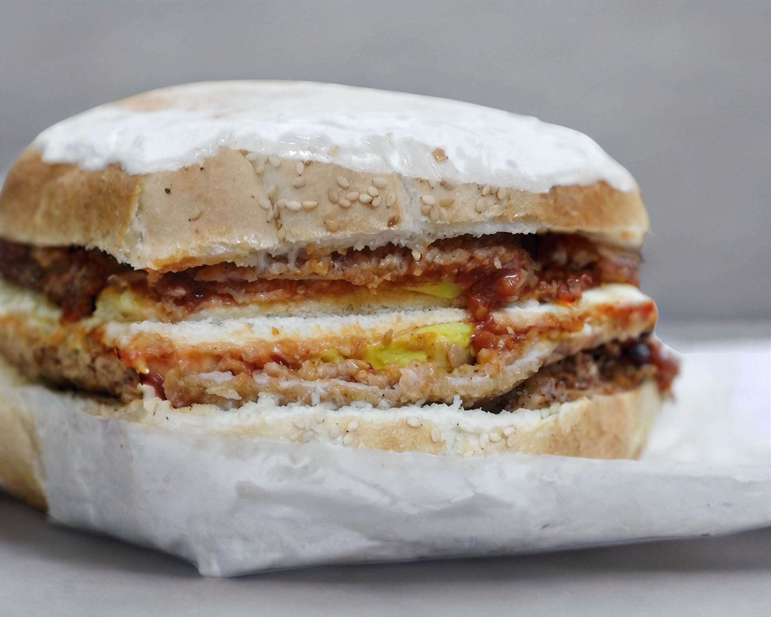 Telera doble con ajonjolí y milanesa empanizada.