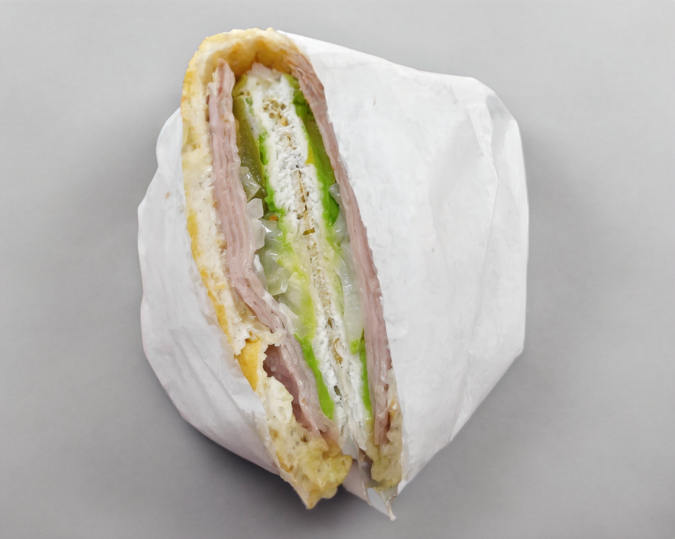 Telera doble con ajonjolí y 4 rebanadas de jamón.