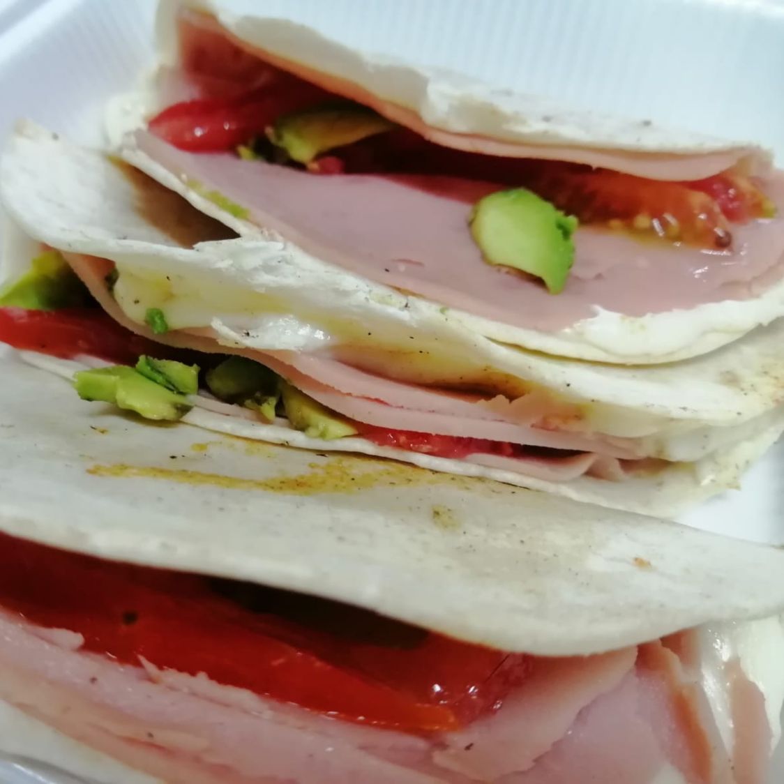 3 sincronizadas de Tortilla de Harina, Queso amarillo, Quesillo y Jamón