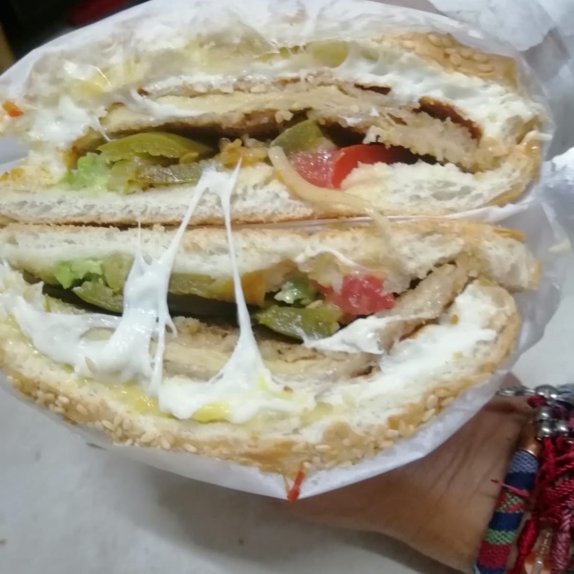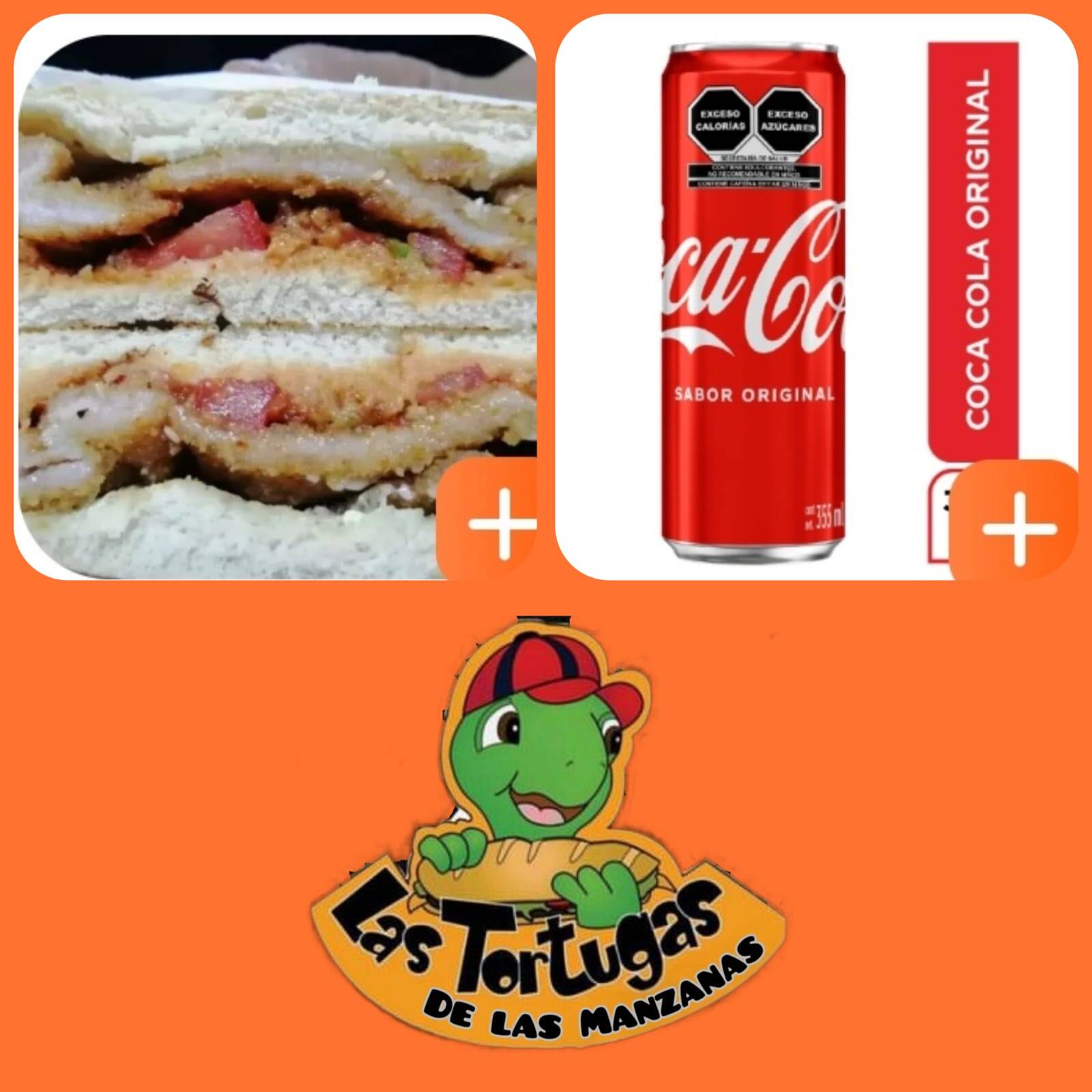Telera doble con ajonjolí, Milanesa de Pollo empanizado, Chuleta y Quesillo