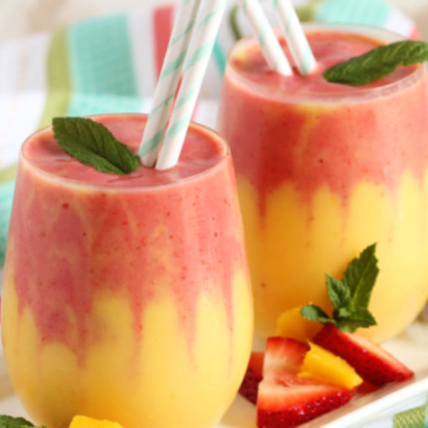 Mango, fresa y naranja.