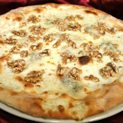 Salsa italiana, queso mozzarella, polvorones, aciago, parmesano, romano y gorgonzola. Pizza de 30 cm de diámetro, 8 rebanadas.