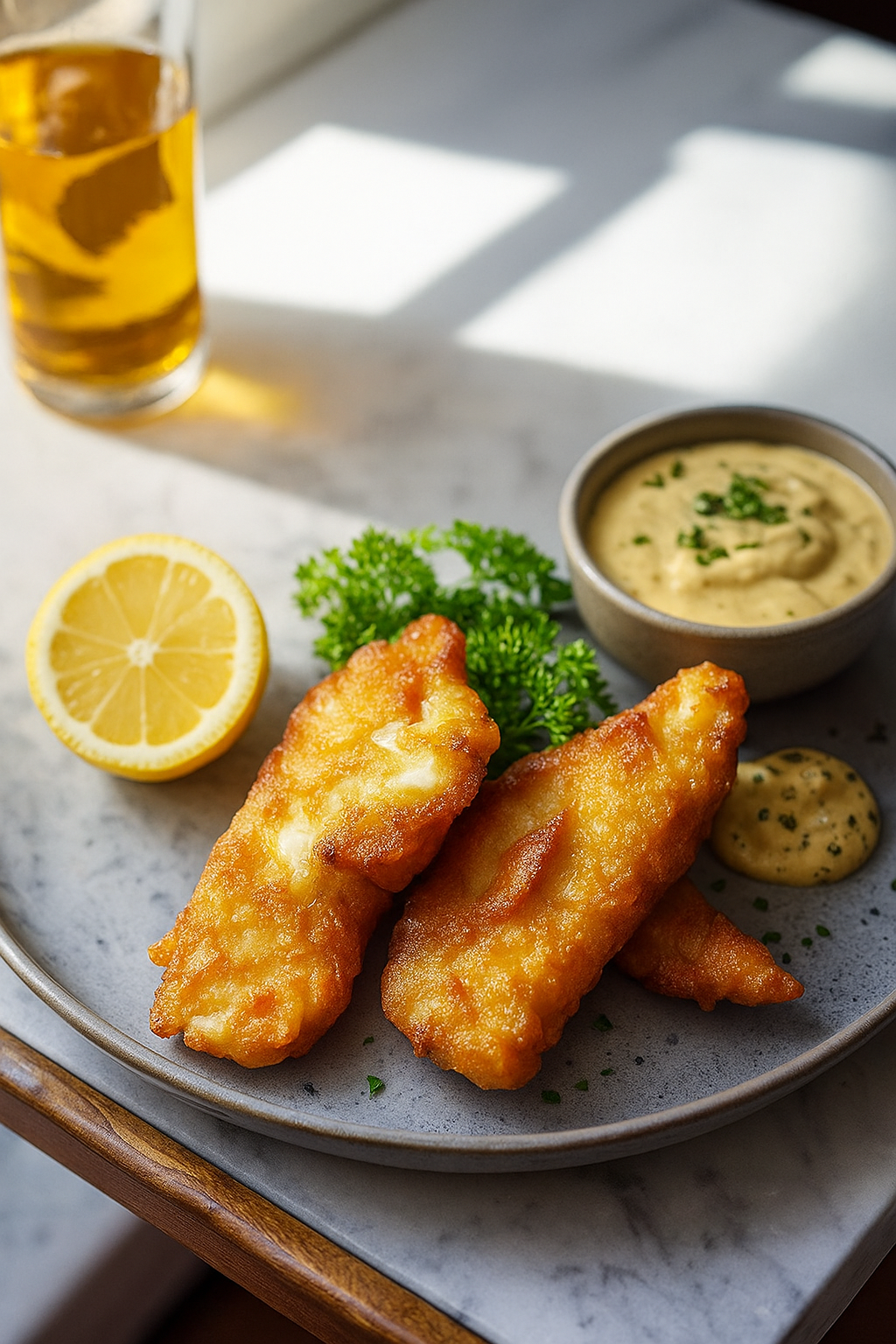 Pescado encurtido con verduras y dip de la casa