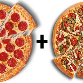2 pizzas de pepperoni y/o queso + 1 Crazy Bread + 1 Crazy Sauce + 1 refresco de 2 litros