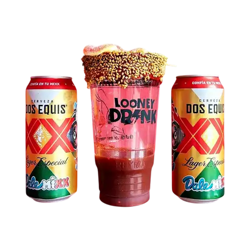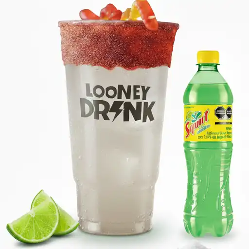 Refresco a elegir preparado en un vaso escarchado y dentro limón, sal y un toque de tajín.