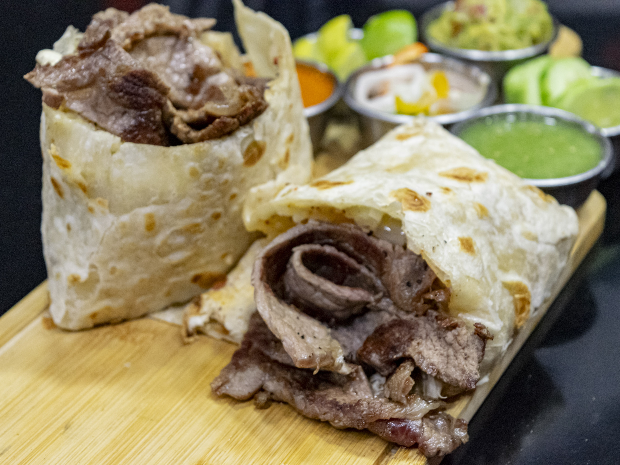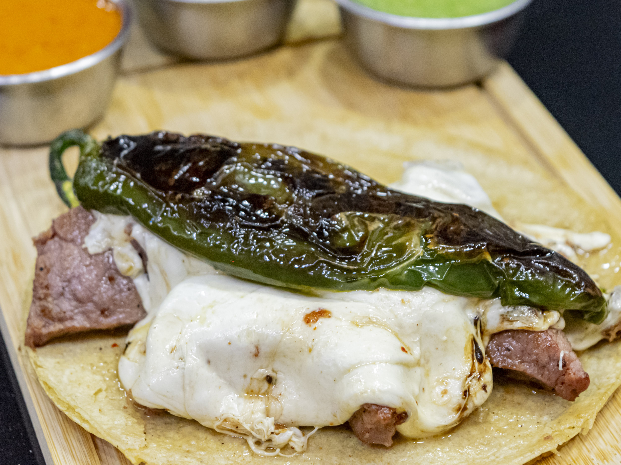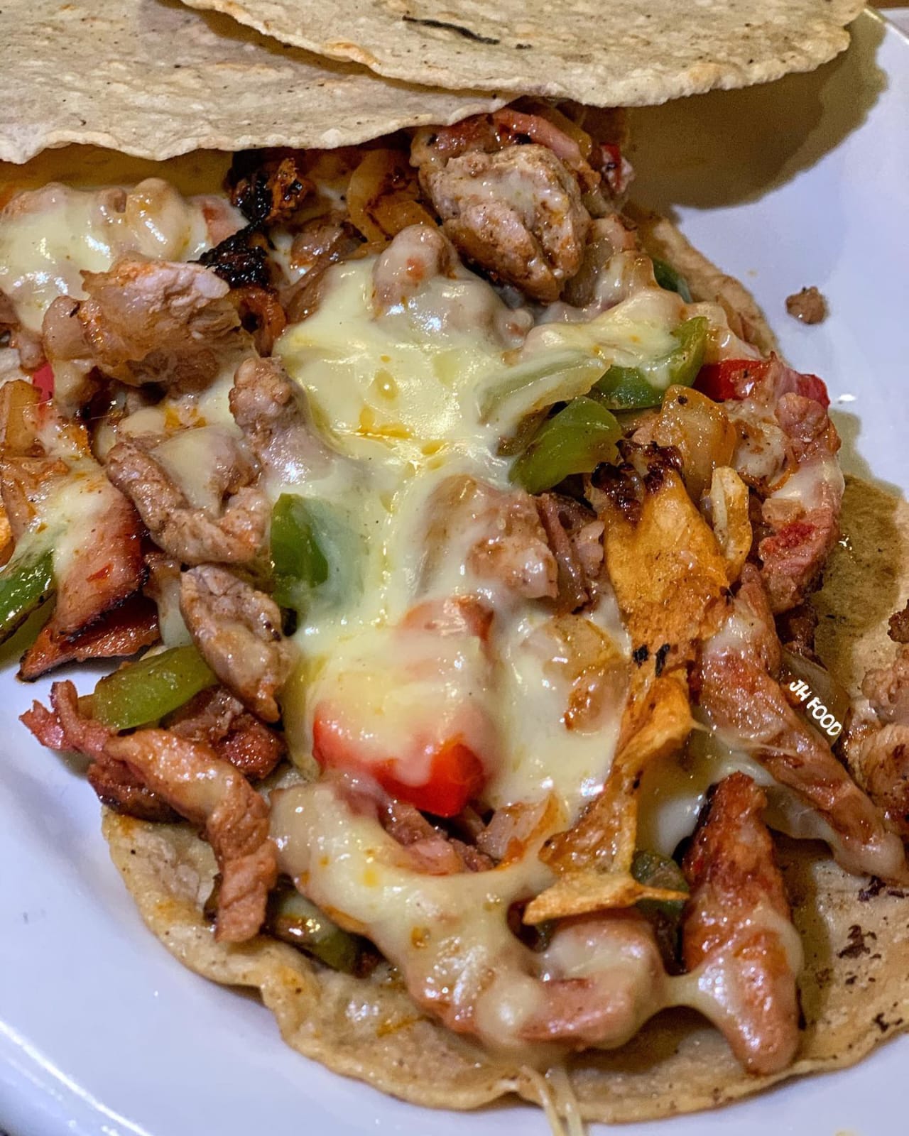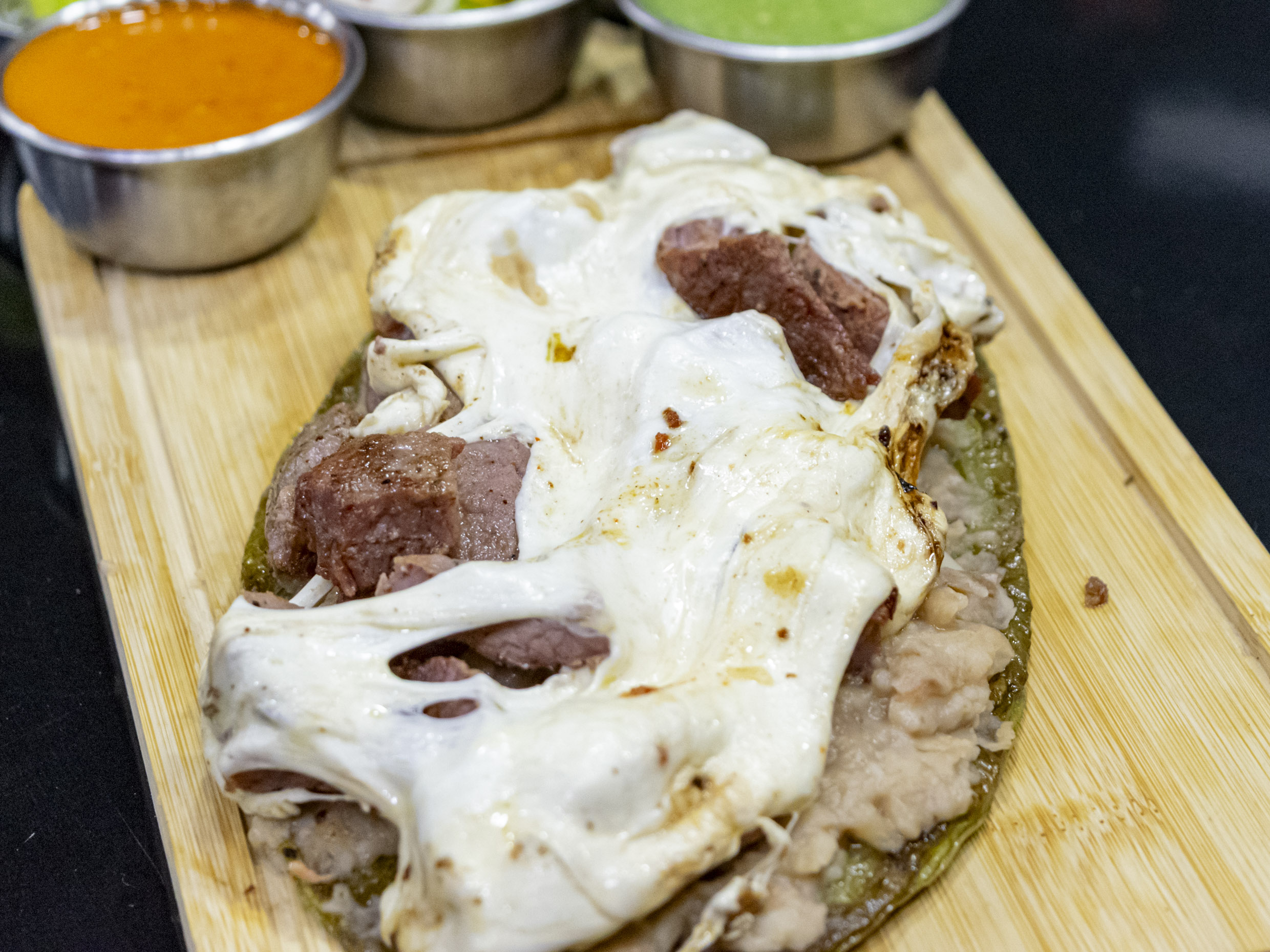 Gringas de Bistec preparado con queso, papa, carne + salsas