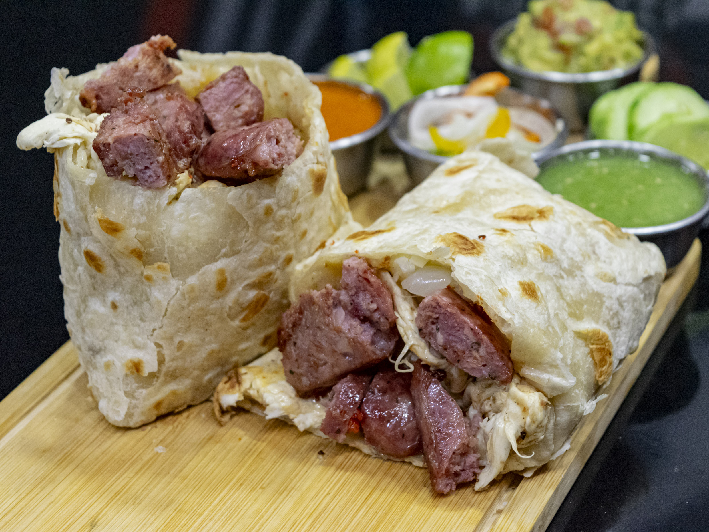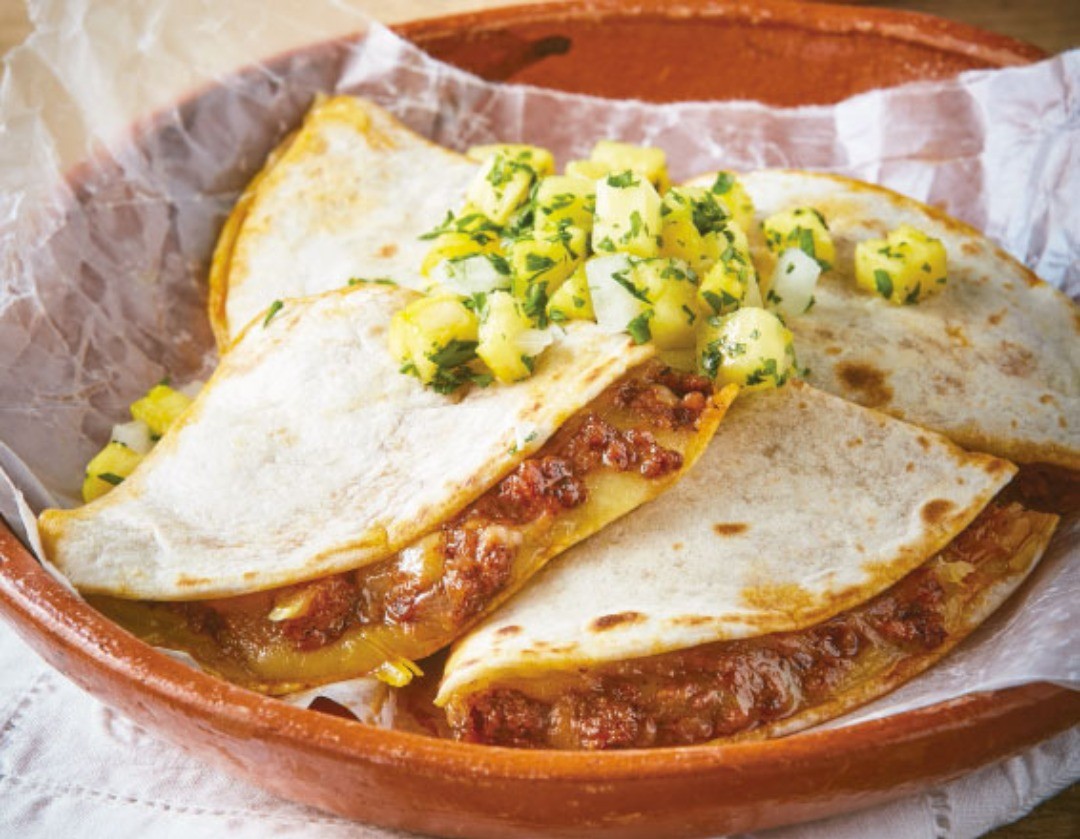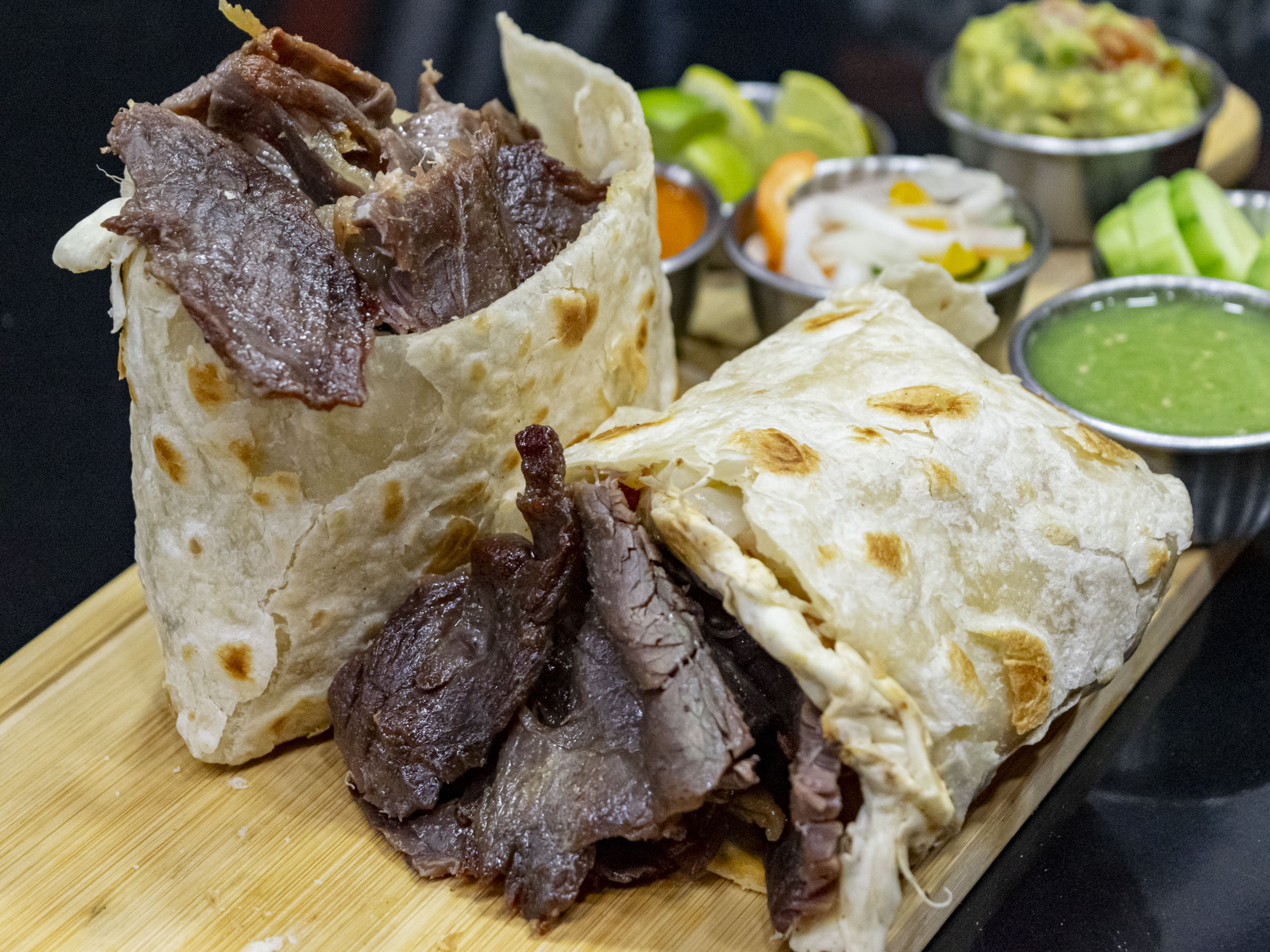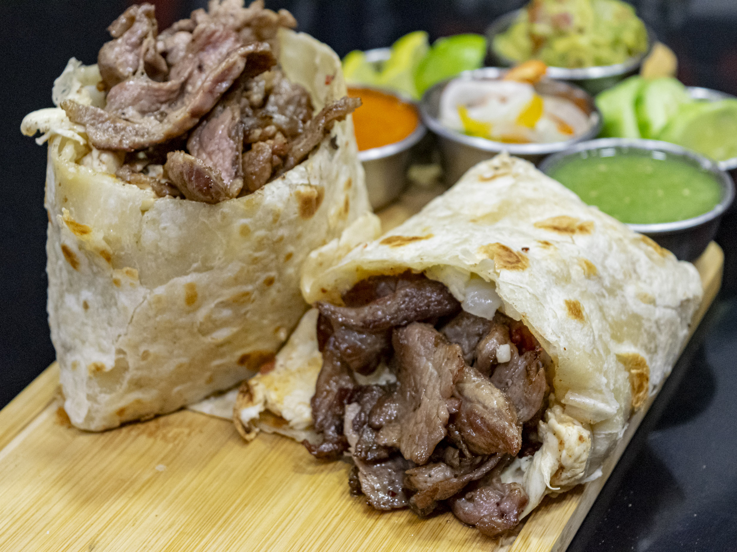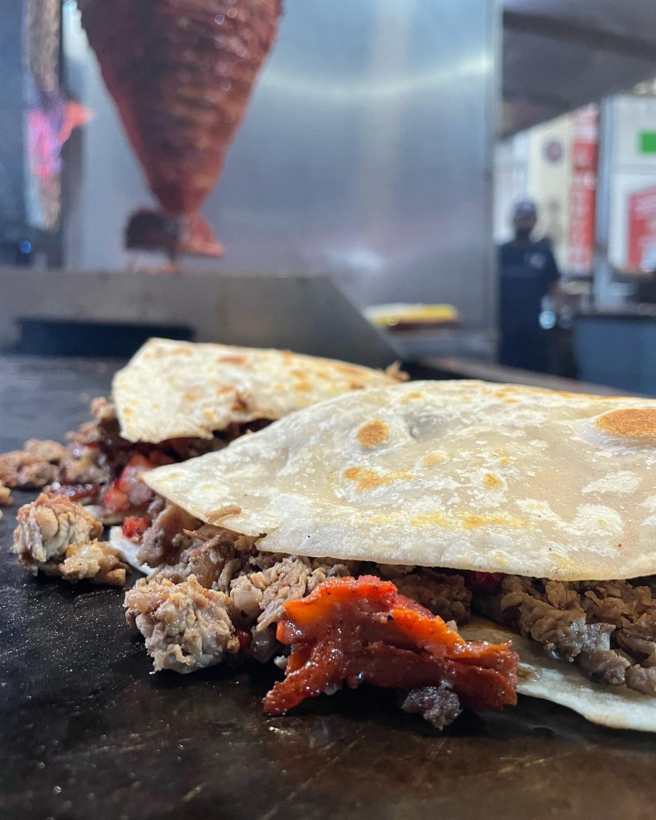 Gringas de Bistec preparado con queso, papa, carne + salsas