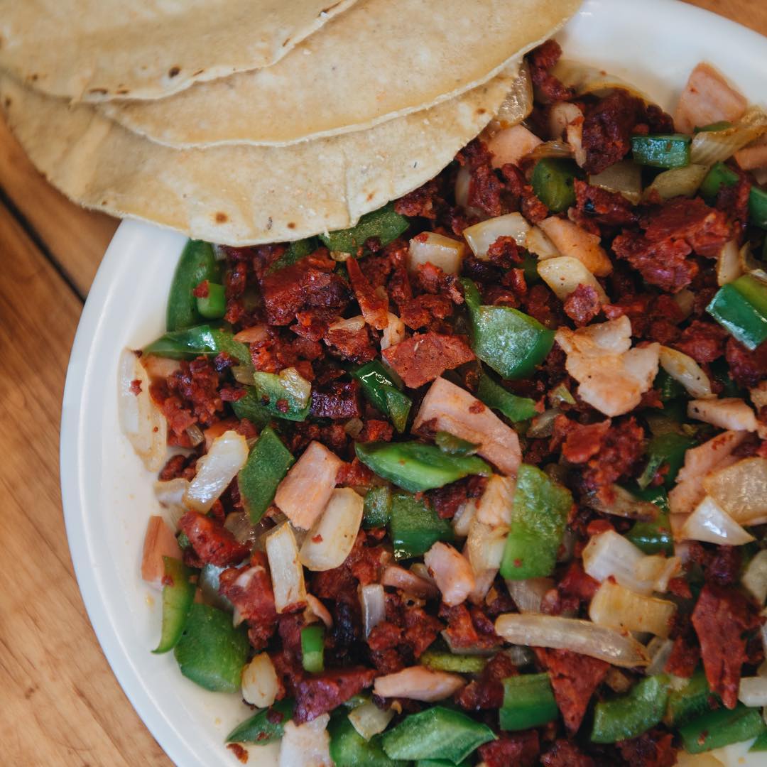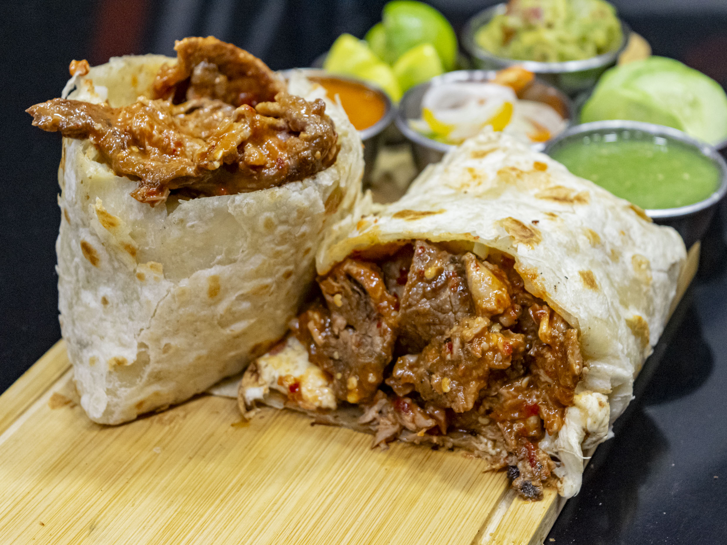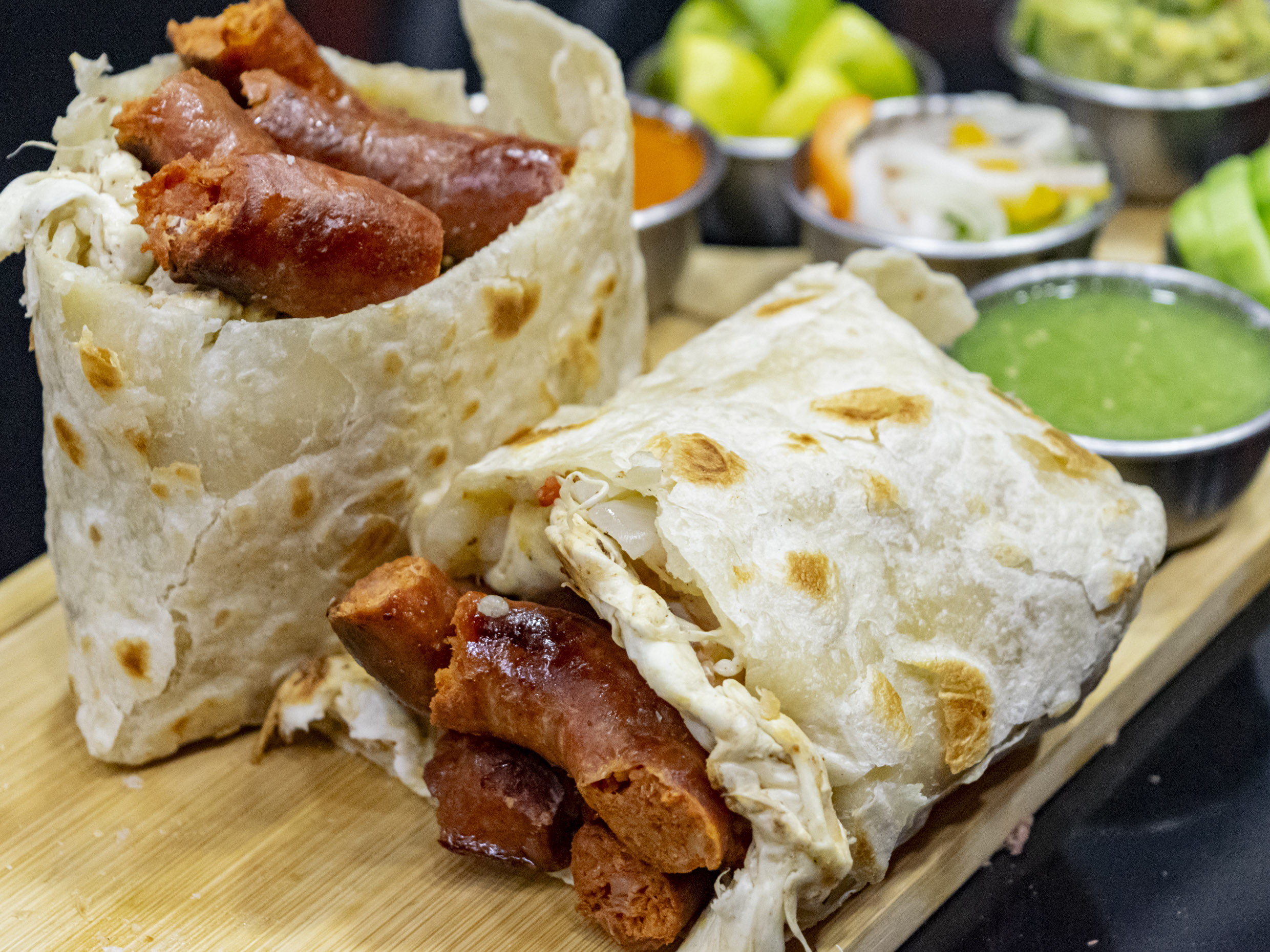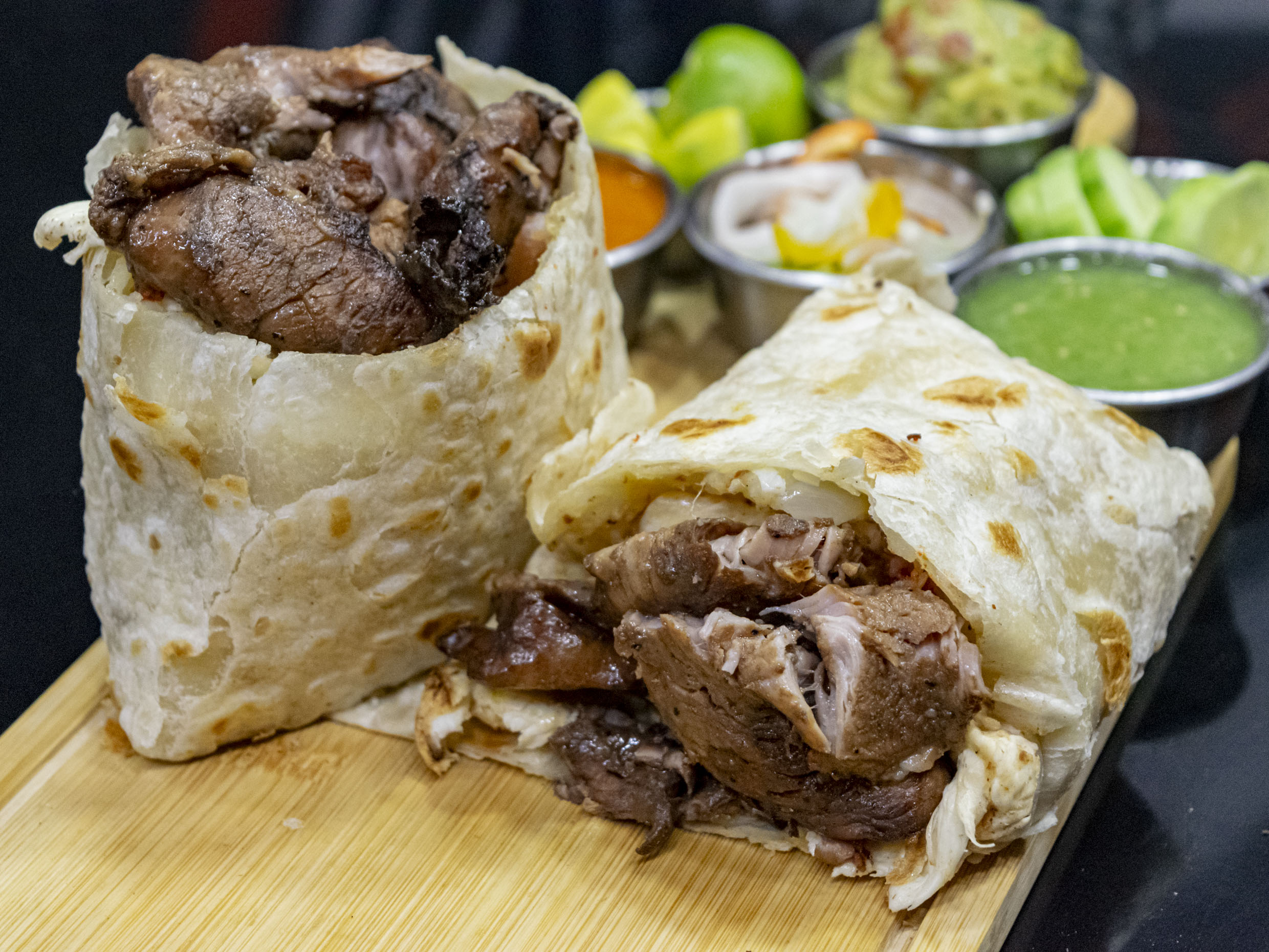 Gringas de Bistec preparado con queso, papa, carne + salsas