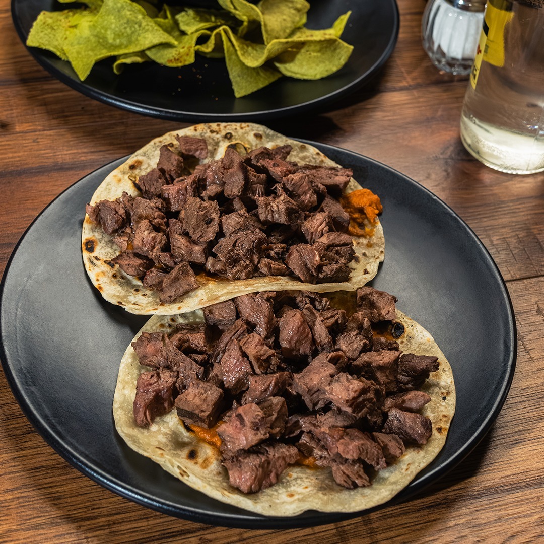 1 Taco de Costilla Con una porción papas y Nápoles.