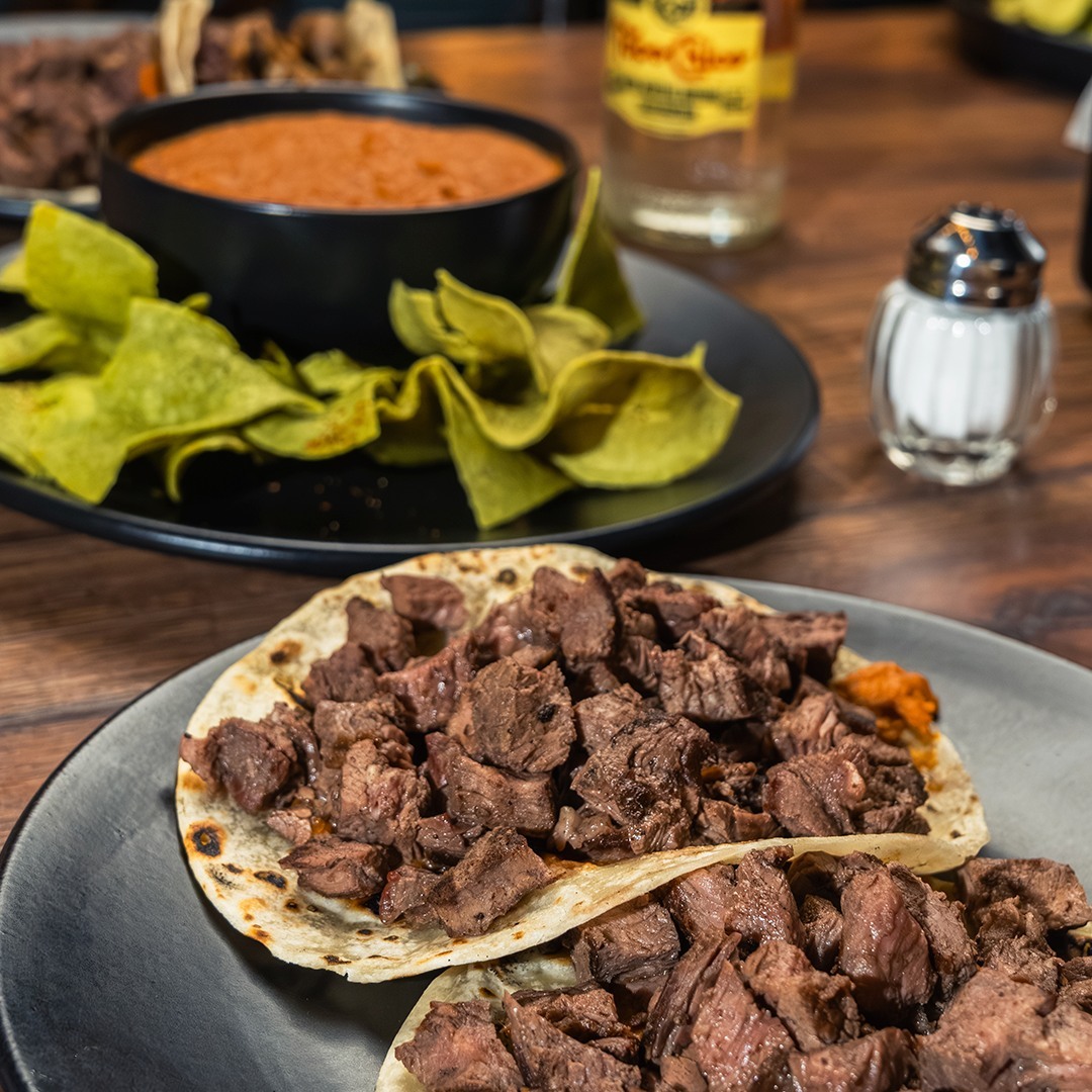 5 carnes a elegir, acompañadas de nopal asado, guacamole y frijoles