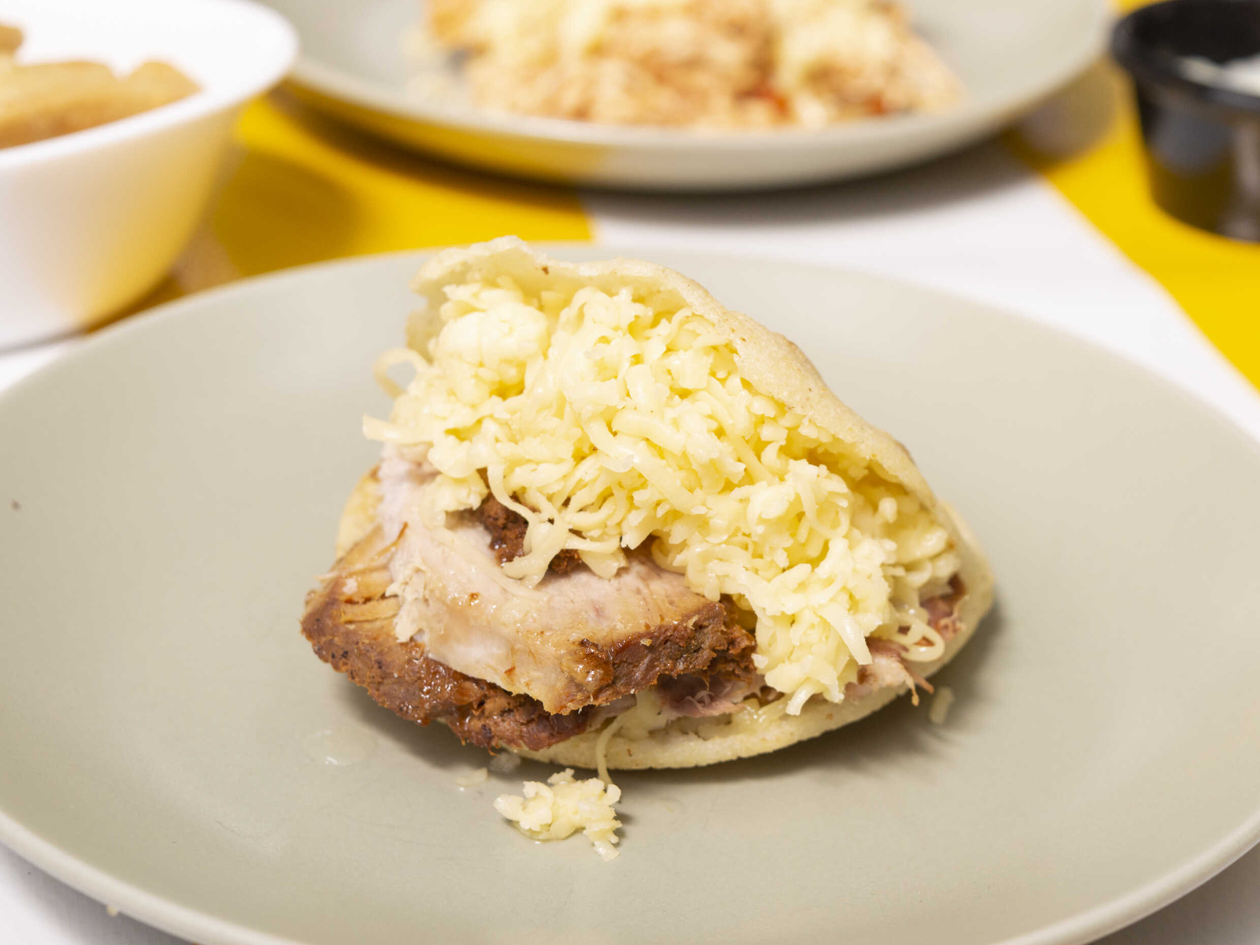 Arepas, perico, queso, jamón, caraotas y carne mechada.