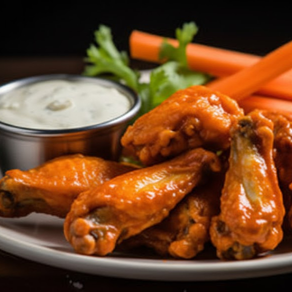 200gr de alitas de pollo bañadas en salsa a elegir acompañadas de vegetales