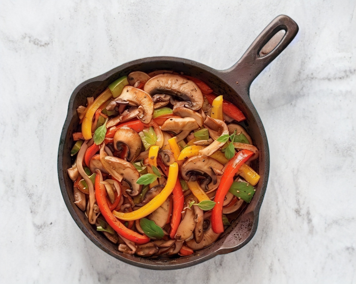 Morrón, cebolla, jitomate, champiñón, nopal y queso panela.