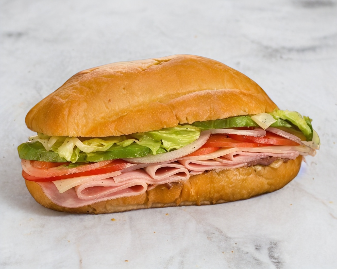 Jamón, queso, jitomate, cebolla, aguacate.