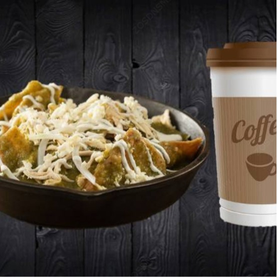 Arma tus chilaquiles verdes con pollo más 1 café americano.